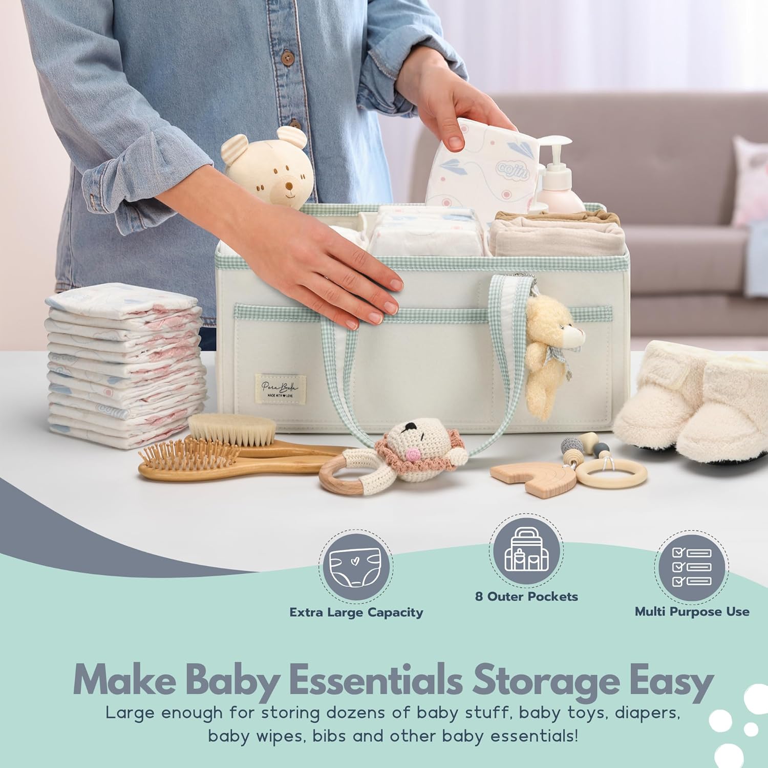 PeraBella Diaper Caddy Organizer with Handle, Baby Shower Gifts Basket Bag, Registry Search Must Haves Items, Nursery Storage Organizer for Newborn Girl Boy, Baby Bag Essentials, Car Diaper Caddy Cart