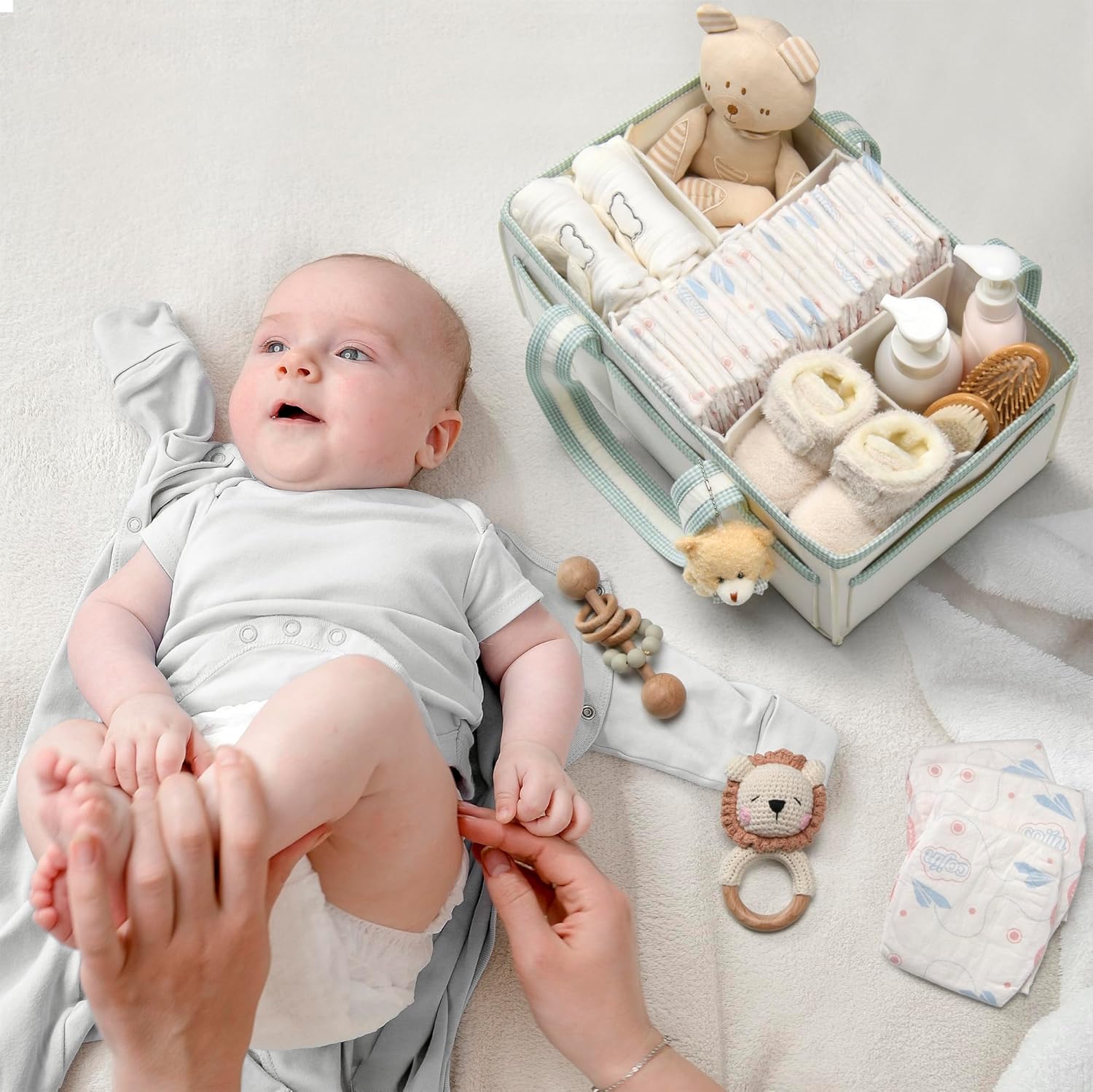 • LIGHTWEIGHT & MULTI-PURPOSE: This baby diaper caddy organizer with handle is perfect for nursery storage, car caddy, or bedside diaper changing station. Store diapers, wipes, breast pump, baby bath items, or toys—ideal for travel and everyday use as baby room organizer and storage