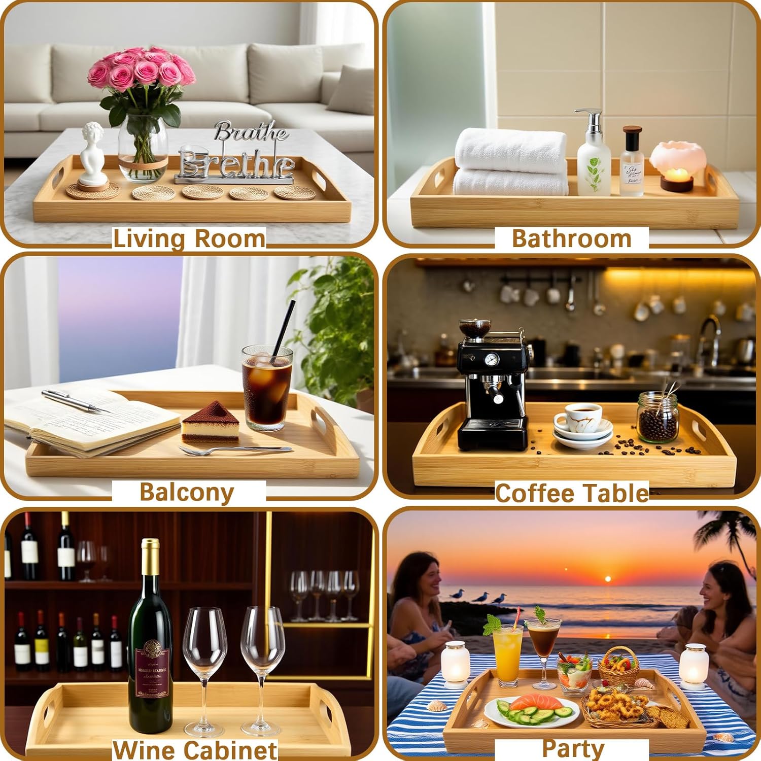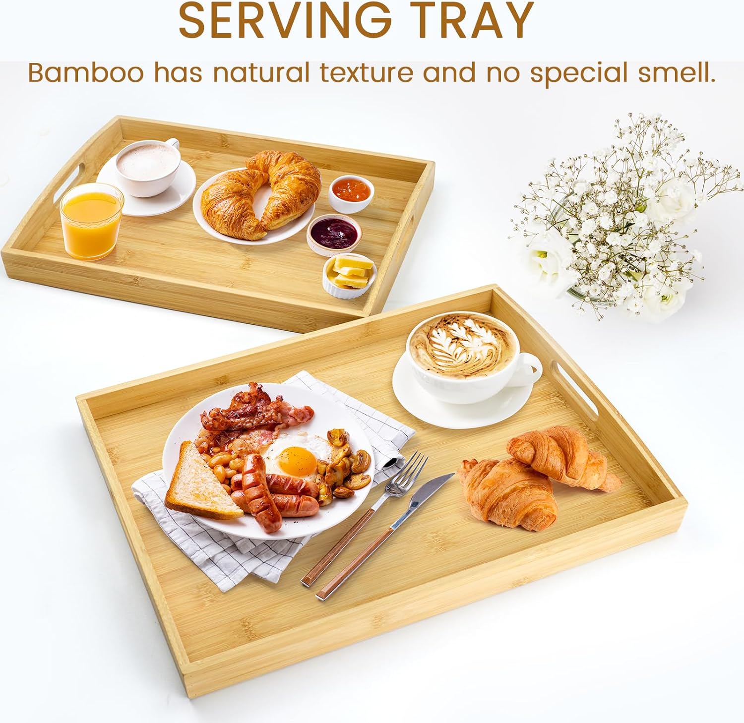 • Bamboo Serving Tray Set:The serving tray is crafted entirely from natural bamboo. This tray for coffee table is durable, sturdy, and designed for daily use at home or in restaurants, it resists cracking even after extended use