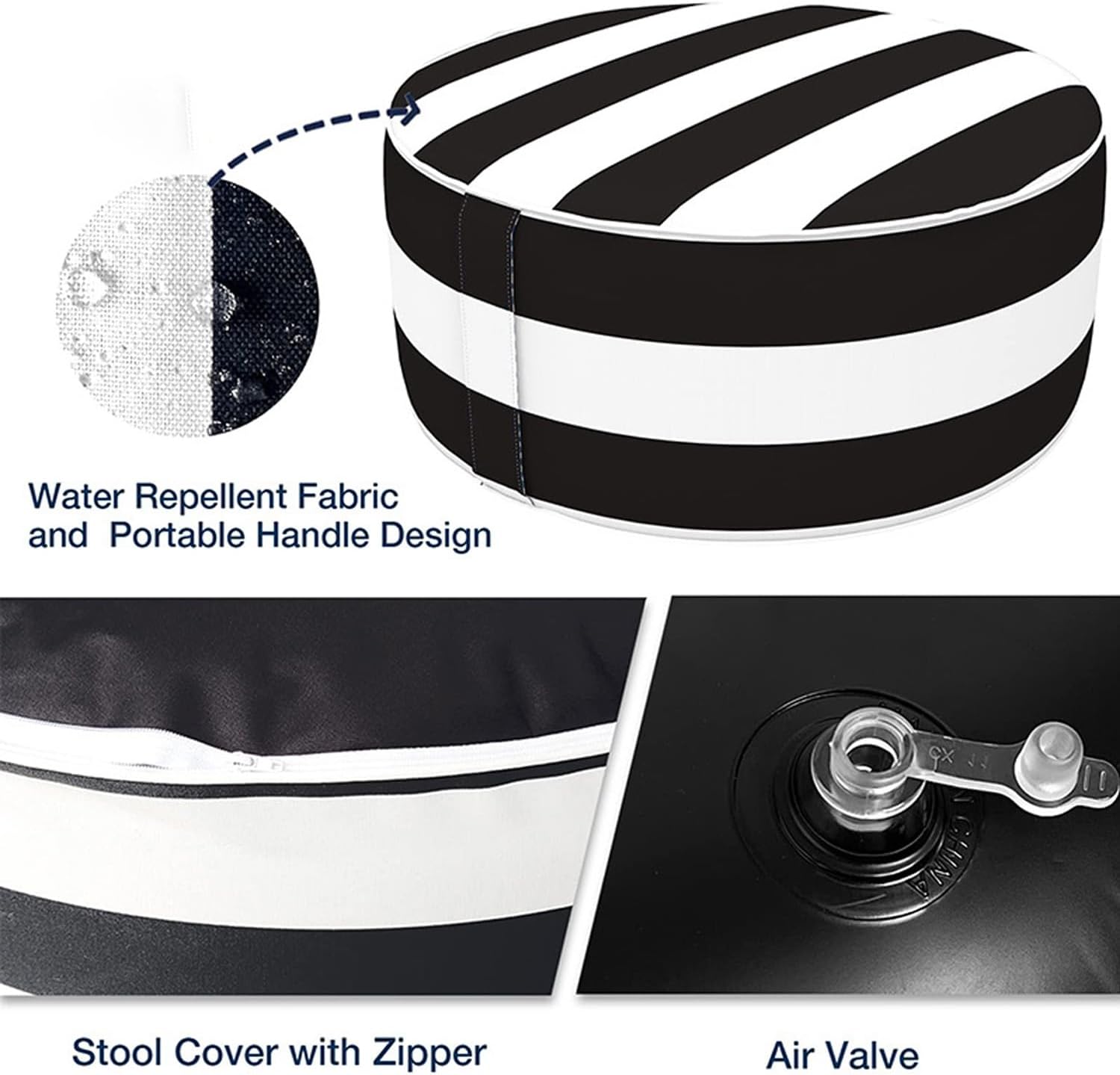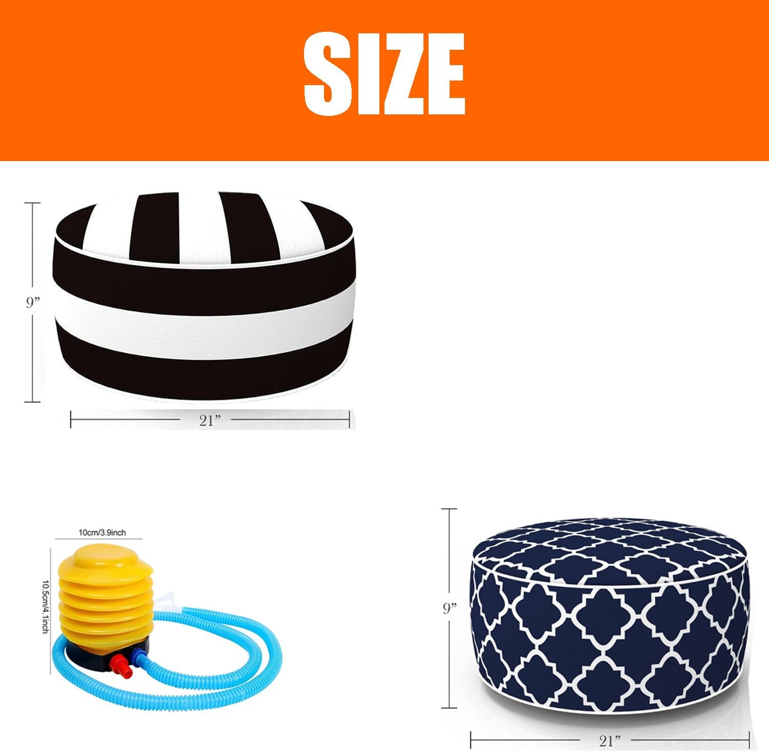 • Package Including: This Value Bundle Come With 1 Pcs Indoor Outdoor Inflatable Ottoman, 2 Pcs Different Styles Sturdy Pvc Liners And 1 Pcs Foot Pump. Measures D21” X H9” (53 X 23cm).