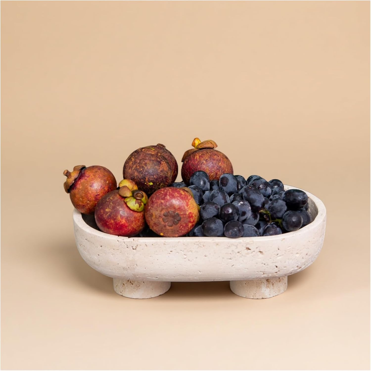 Natural Oval Travertine Fruit Bowl 10" – Large Decorative Bowl & Travertine Decor Pedestal for Kitchen Counter & Dining Table ,For Entryway, Kitchen Fruit Bowl, Potpourri, Dining Table Centerpiece.
