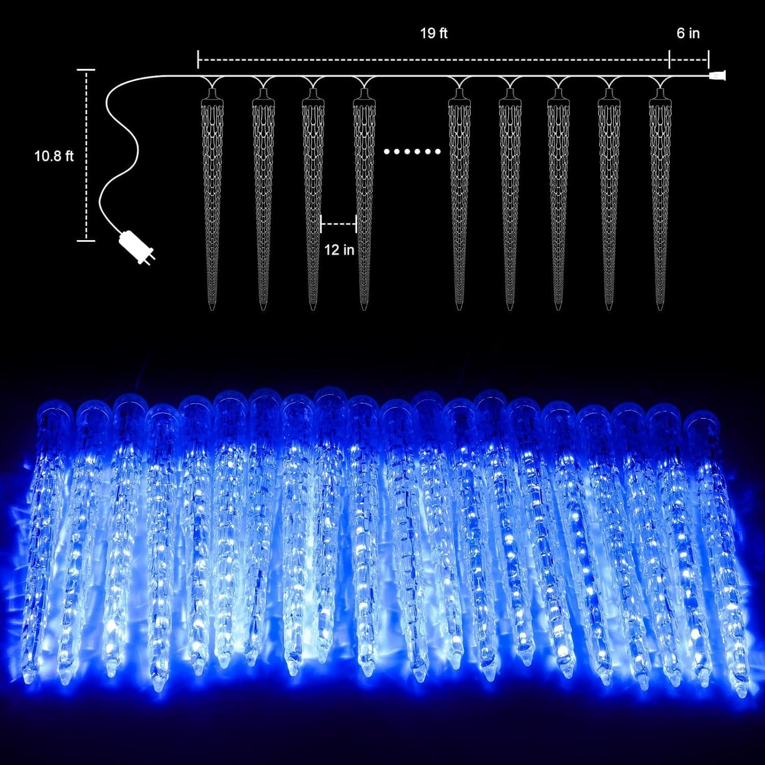 Brightown Christmas Meteor Shower Icicle Lights Outdoor, 2 Pack Total 40ft with 40 Large Tube 960 LED Dropping Effect, Waterproof Decorations for House Eave Roofline, Blue
