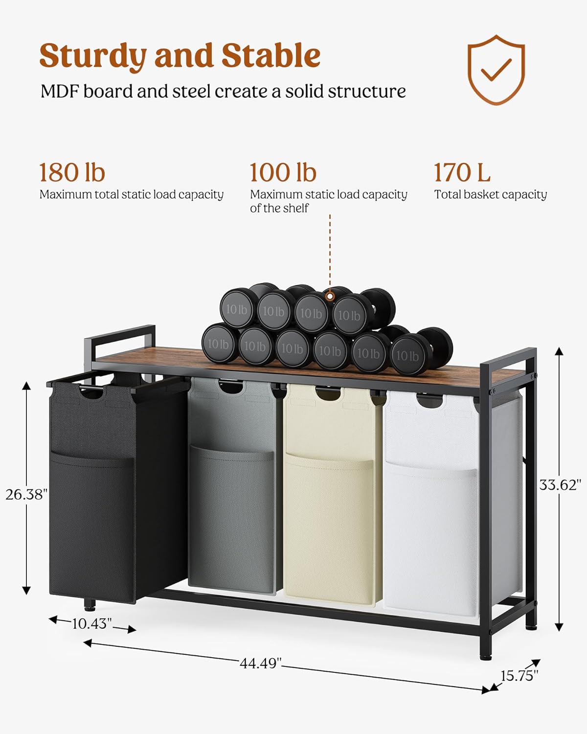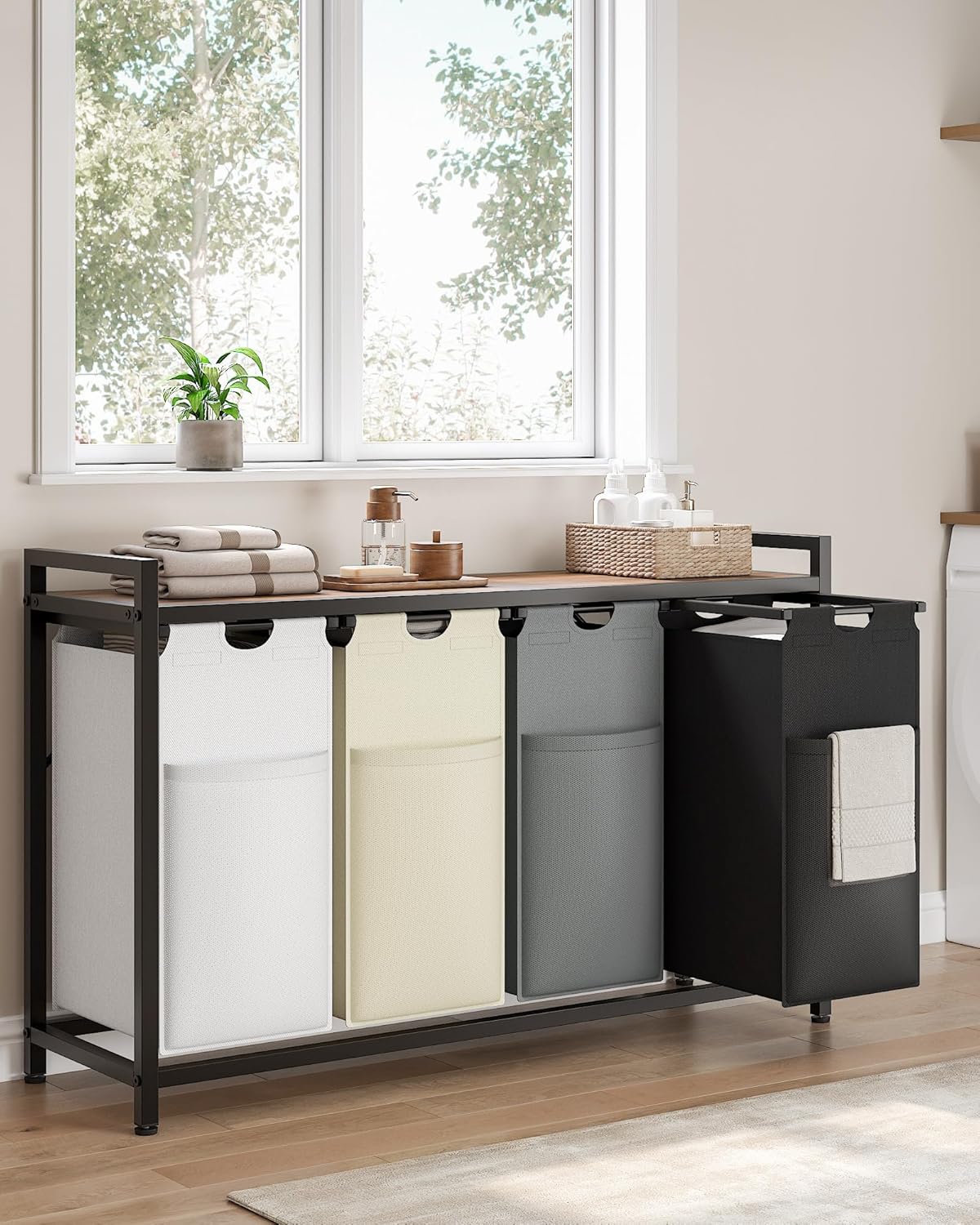 • Pull-out & Removable Design: 4 collapsible laundry sections is designed for easy pull-out of the clothes hamper, then you can remove the laundry bags to the laundry room. Feature a bottom board to offer extra support -No Sag When Laundry Bags Full.
