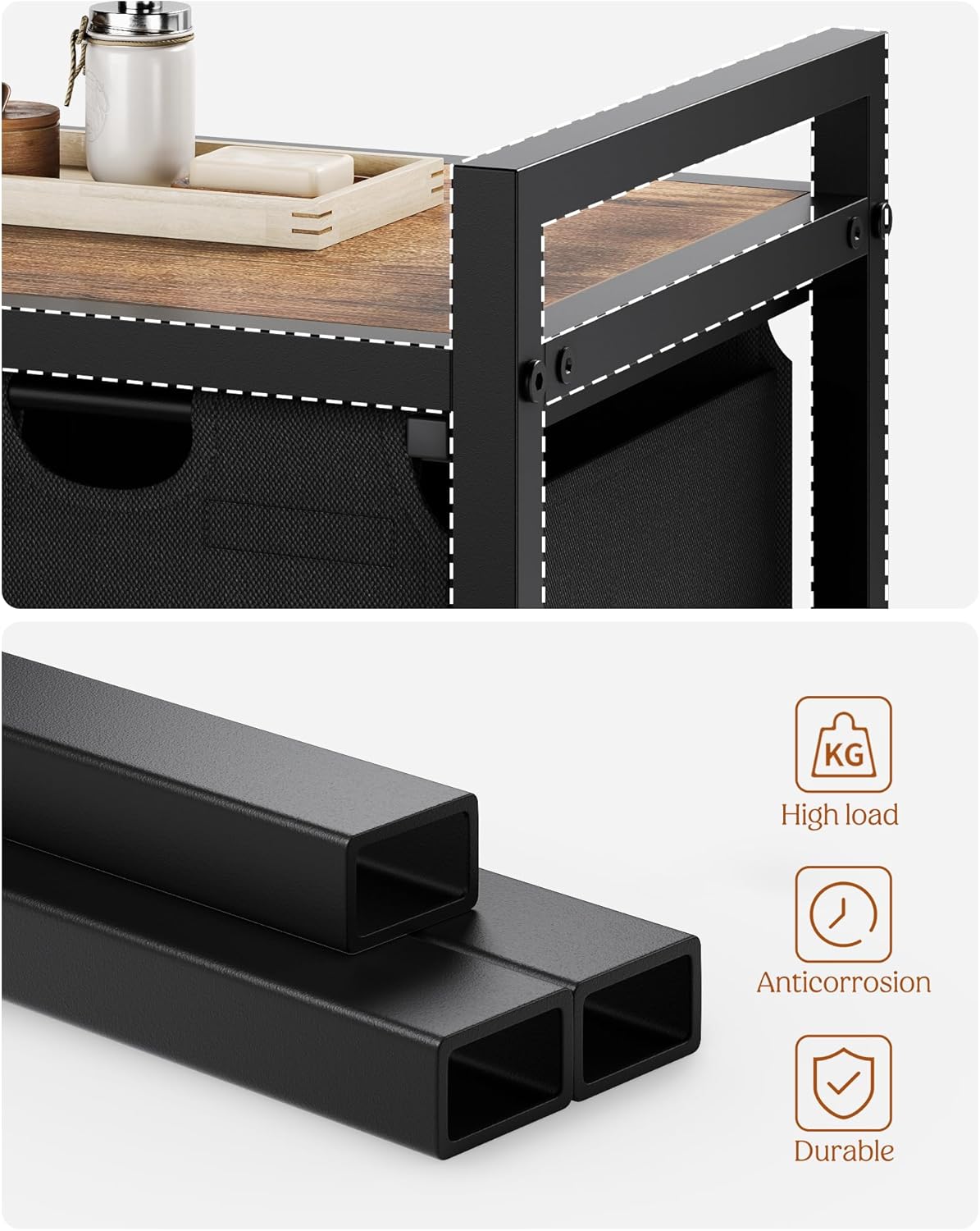 • Robust & Stable: This laundry organizer is made of particleboard and iron, which offers reliable strength and stability. The adjustable feet and anti-tip kits help prevent unwanted wobbles or accidental tipping.