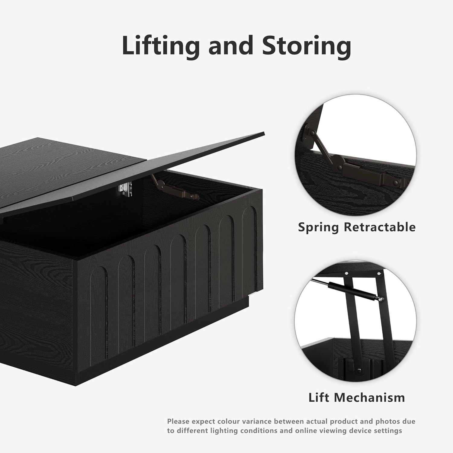 Lift Top Coffee Table with Storage, Modern Coffee Table with Arched Design, 31.5" Square Tea Table with Wood Grain, Minimalist Multifunctional Center Table for Living Room, Office, Black