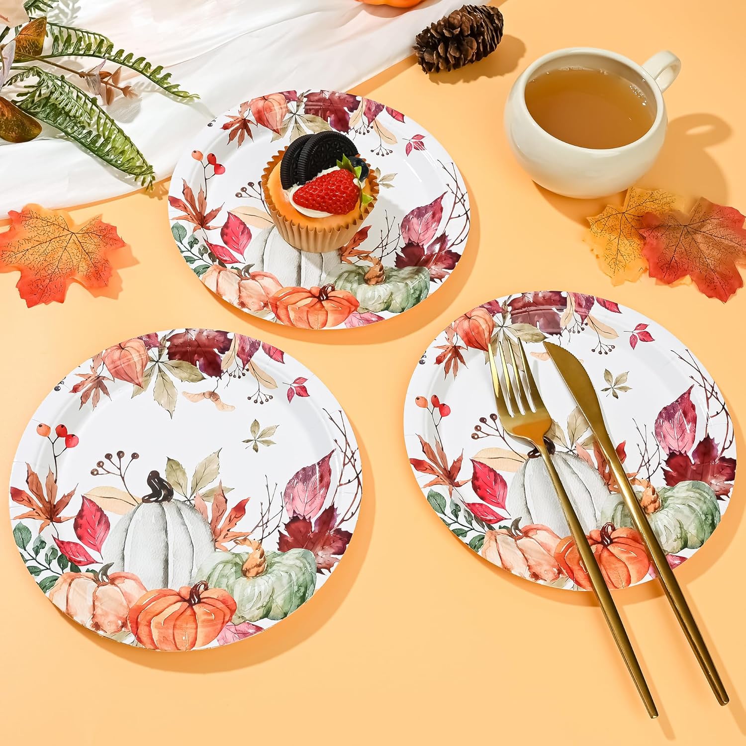 • ‌Premium Fall-Themed Design‌: Featuring charming pumpkin and maple leaf watercolor patterns, these rustic disposable plates bring cozy autumn vibes to your Thanksgiving table decor, harvest party supplies, or farmhouse-themed celebrations
