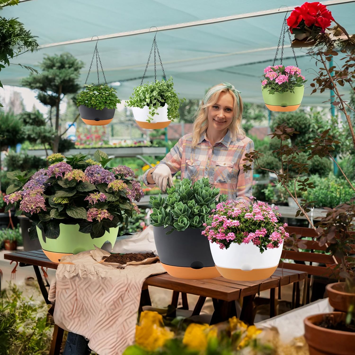 • 【Ventilation and Drainage】The bottom of the planter has a porous design for proper ventilation and drainage. for effective drainage and ventilation. This, combined with the mesh-like structure at the base of the 8/10/12 inch self-watering hanging pots, ensures optimal aeration. Suitable for plastic hanging baskets for plants, this design promotes well plant respiration.