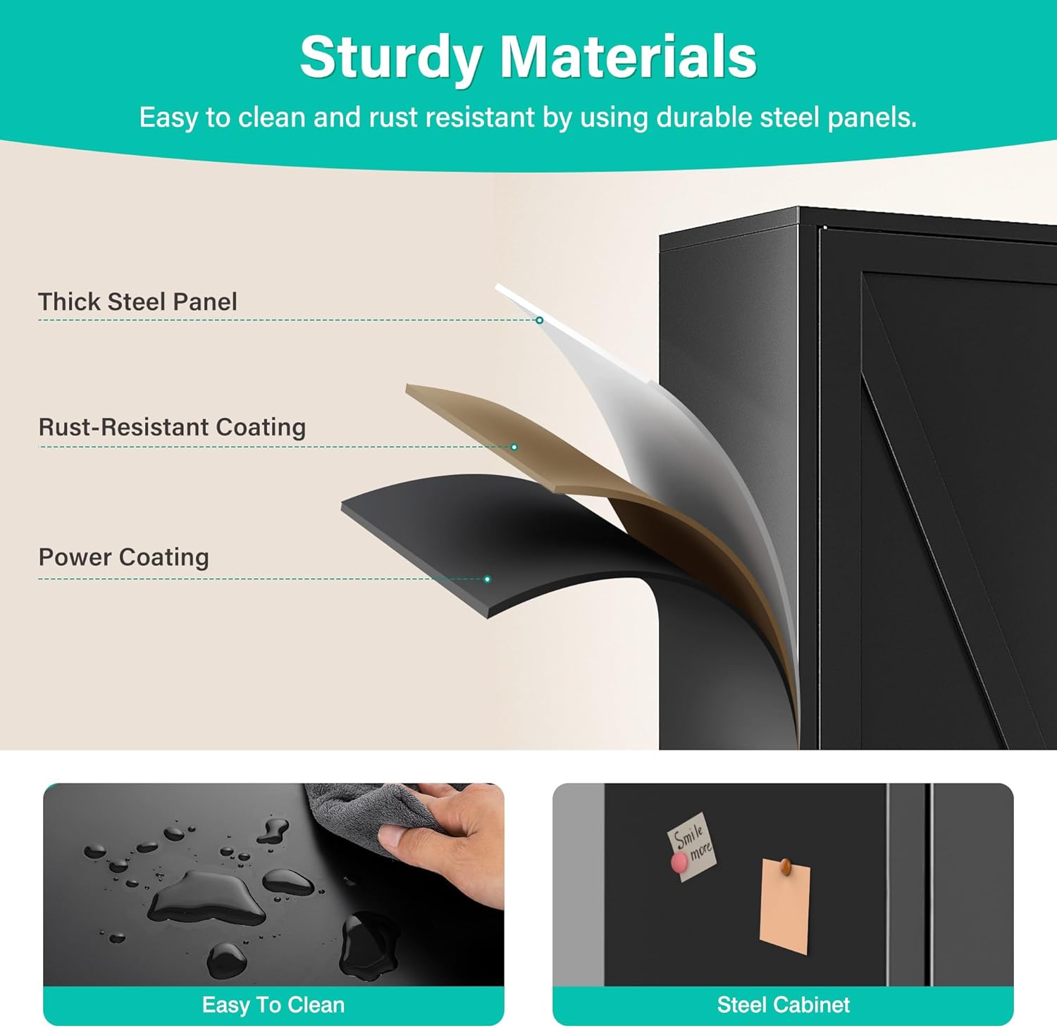 • Sturdy,Durable and Safe: Made of powder-coated steel plate, wide & deep cabinet with door and shelf is sturdy,durable and easy to clean.Load capacity is up to 120lbs each shelf. The included anti-tip kit helps secure the pantry cabinets to the wall to give you a safer living space.