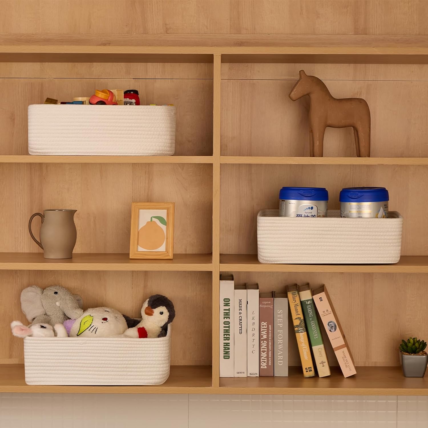 • [ Stylish & Versatile ]:‌ Great for organizing small items on desks, in closets, wardrobes, or dressers—‌these cute baskets‌ add texture to any living room, bedroom, or bathroom, appealing to fans of modern minimalist design
