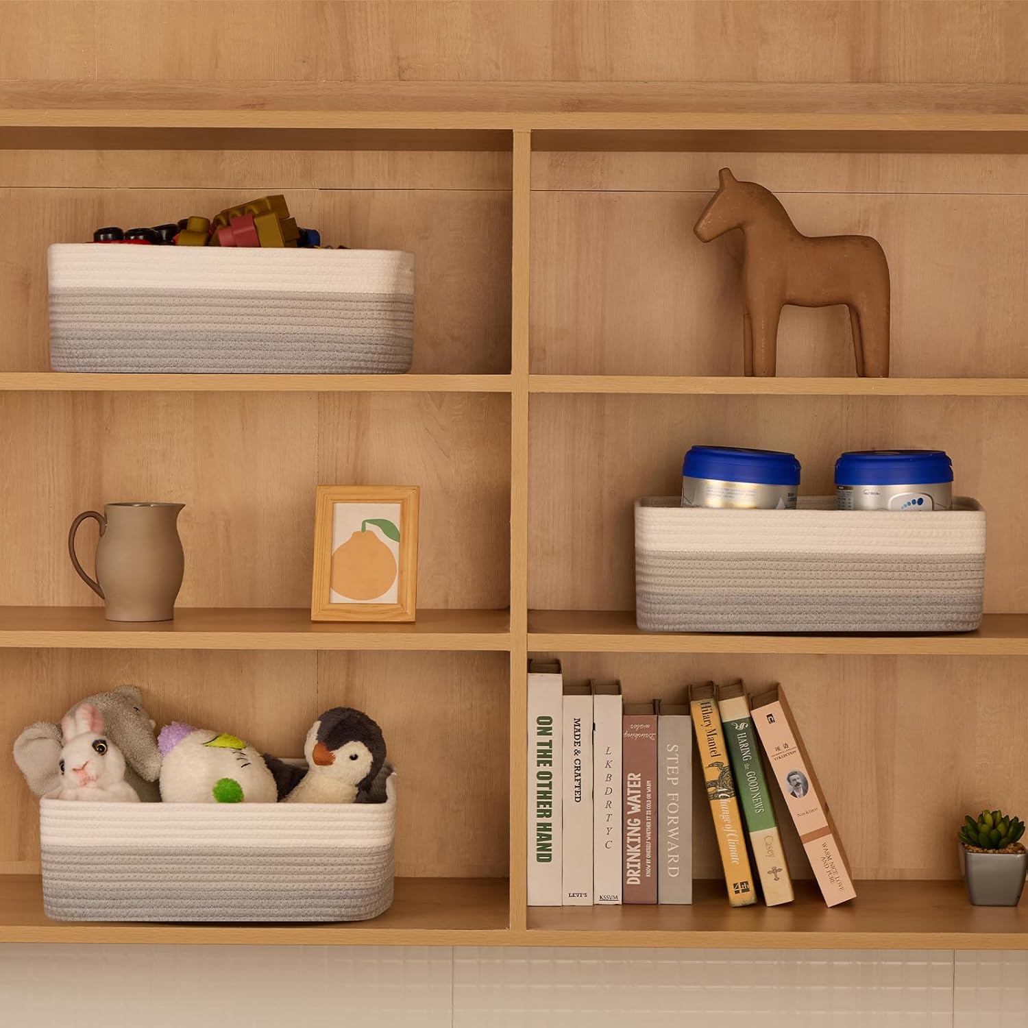 • [ Stylish & Versatile ]:‌ Great for organizing small items on desks, in closets, wardrobes, or dressers—‌these cute baskets‌ add texture to any living room, bedroom, or bathroom, appealing to fans of modern minimalist design