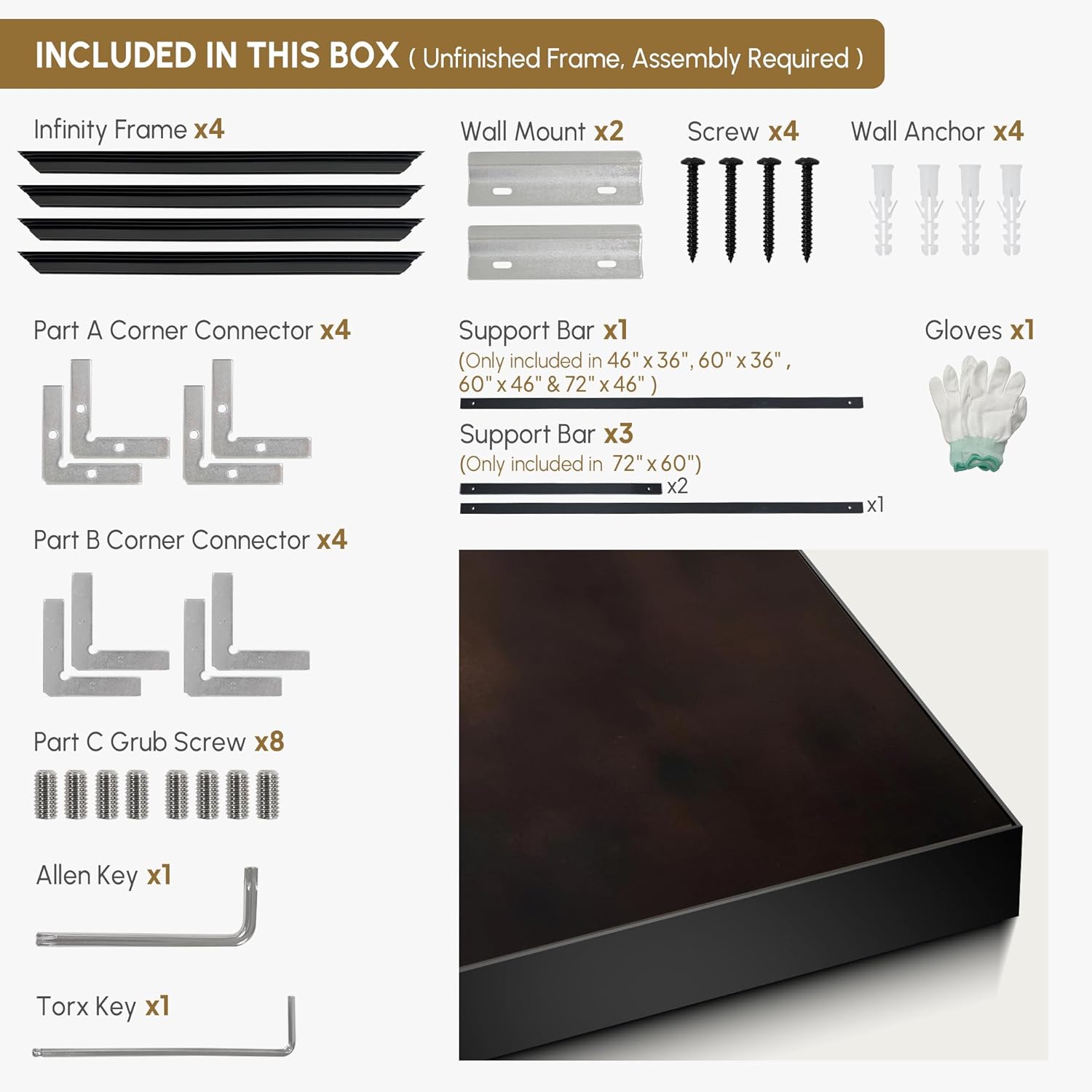 • Assembly Required: The artwork comes with the frame components unassembled. Don¡¯t worry - setup is straightforward and tool-friendly. For best results and accurate alignment, we recommend two people to ensure a smooth assembly and a stable, secure wall mount.