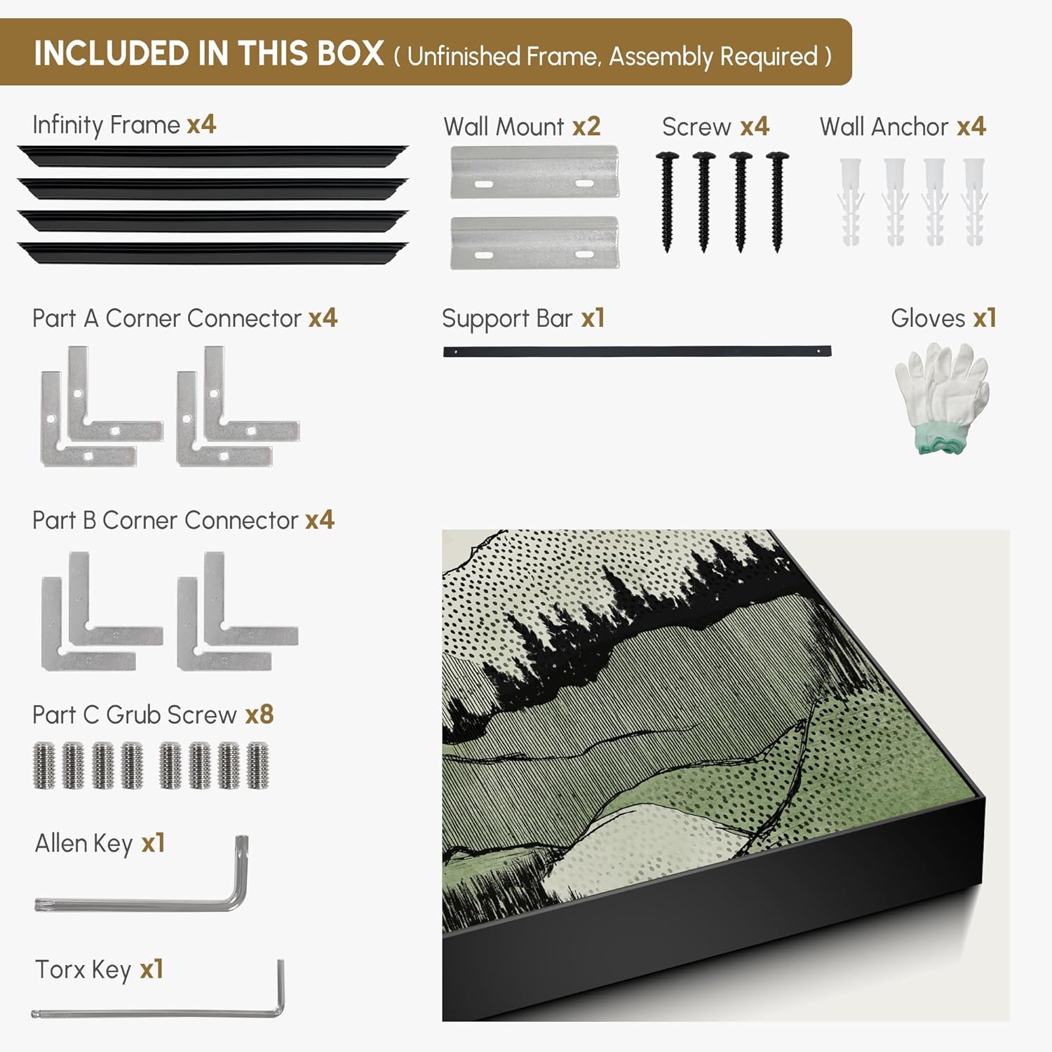 • Assembly Required: The artwork comes with the frame components unassembled. Don¡¯t worry - setup is straightforward and tool-friendly. For best results and accurate alignment, we recommend two people to ensure a smooth assembly and a stable, secure wall mount.