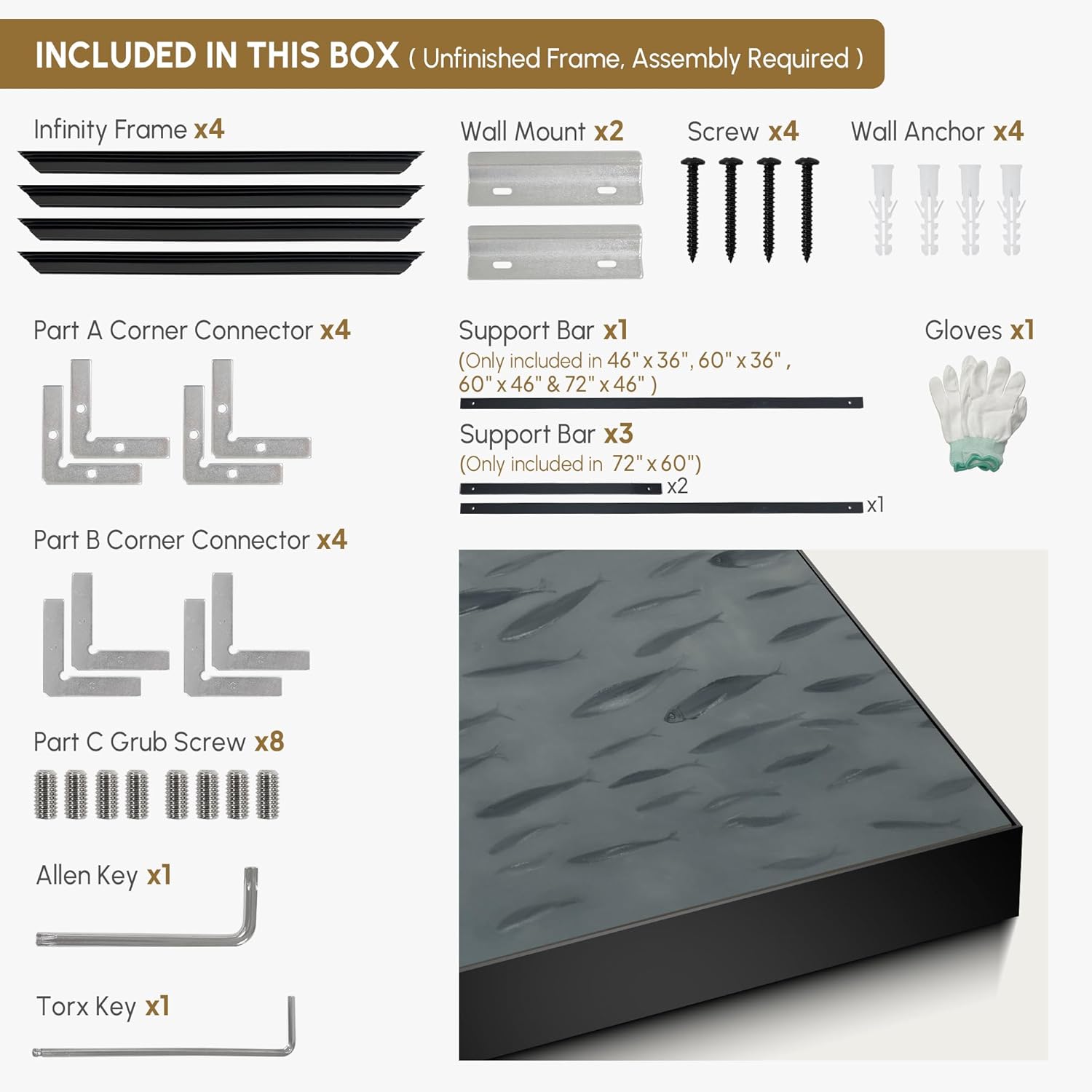 • Assembly Required: The artwork comes with the frame components unassembled. Don¡¯t worry - setup is straightforward and tool-friendly. For best results and accurate alignment, we recommend two people to ensure a smooth assembly and a stable, secure wall mount.