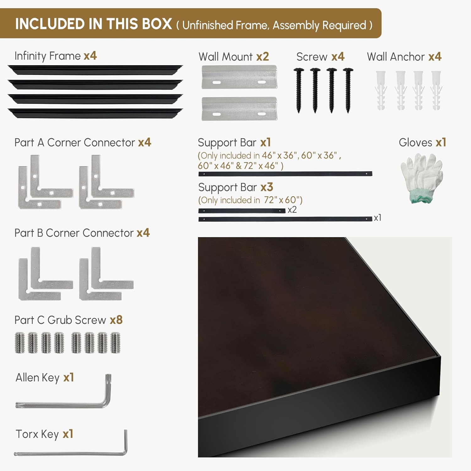 • Assembly Required: The artwork comes with the frame components unassembled. Don¡¯t worry - setup is straightforward and tool-friendly. For best results and accurate alignment, we recommend two people to ensure a smooth assembly and a stable, secure wall mount.