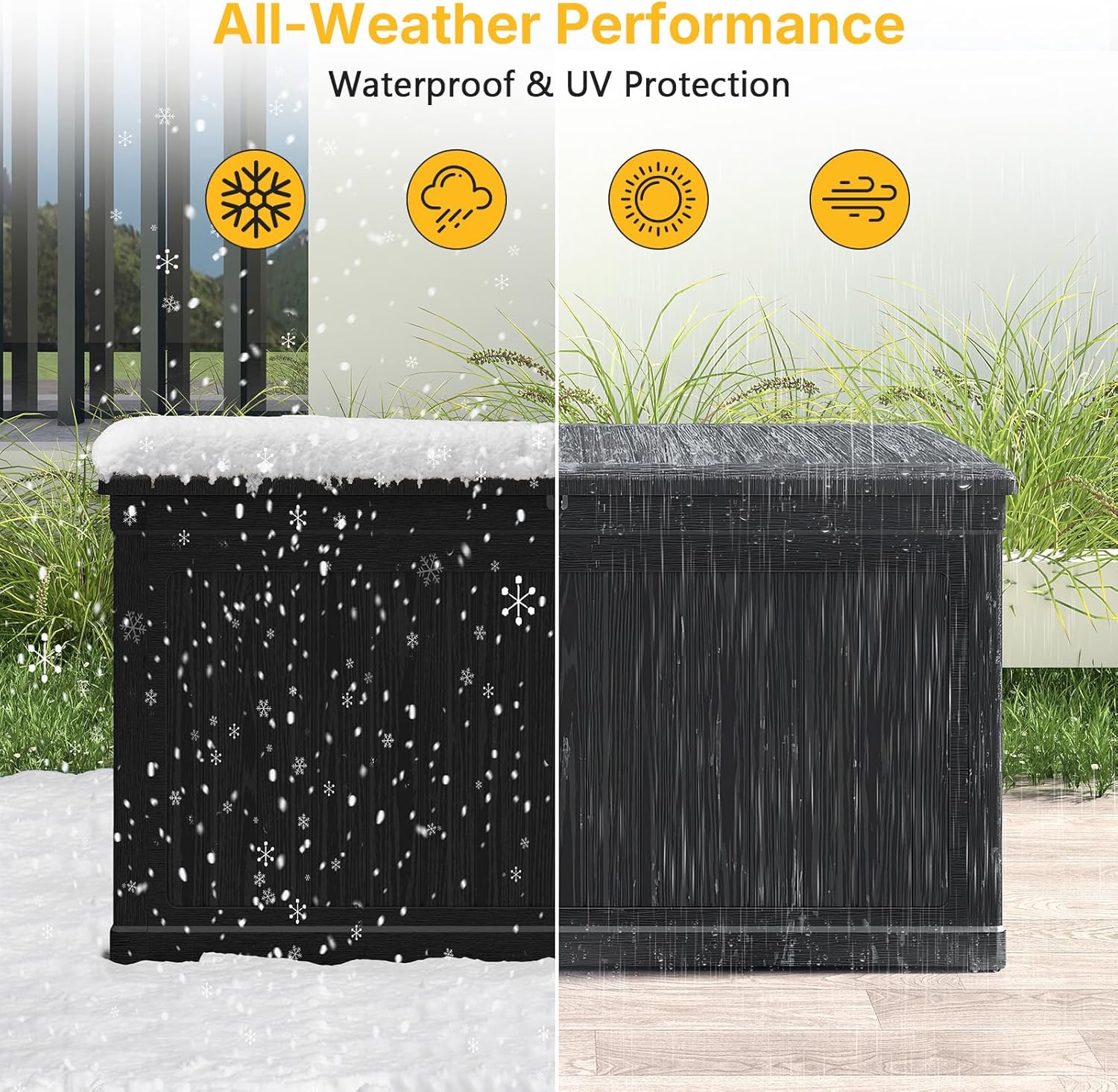 • 【All-Weather Durability】Constructed with premium weatherproof polyester fabric featuring UV-resistant coating, this outdoor storage box protects contents from rain, sun damage and dust.