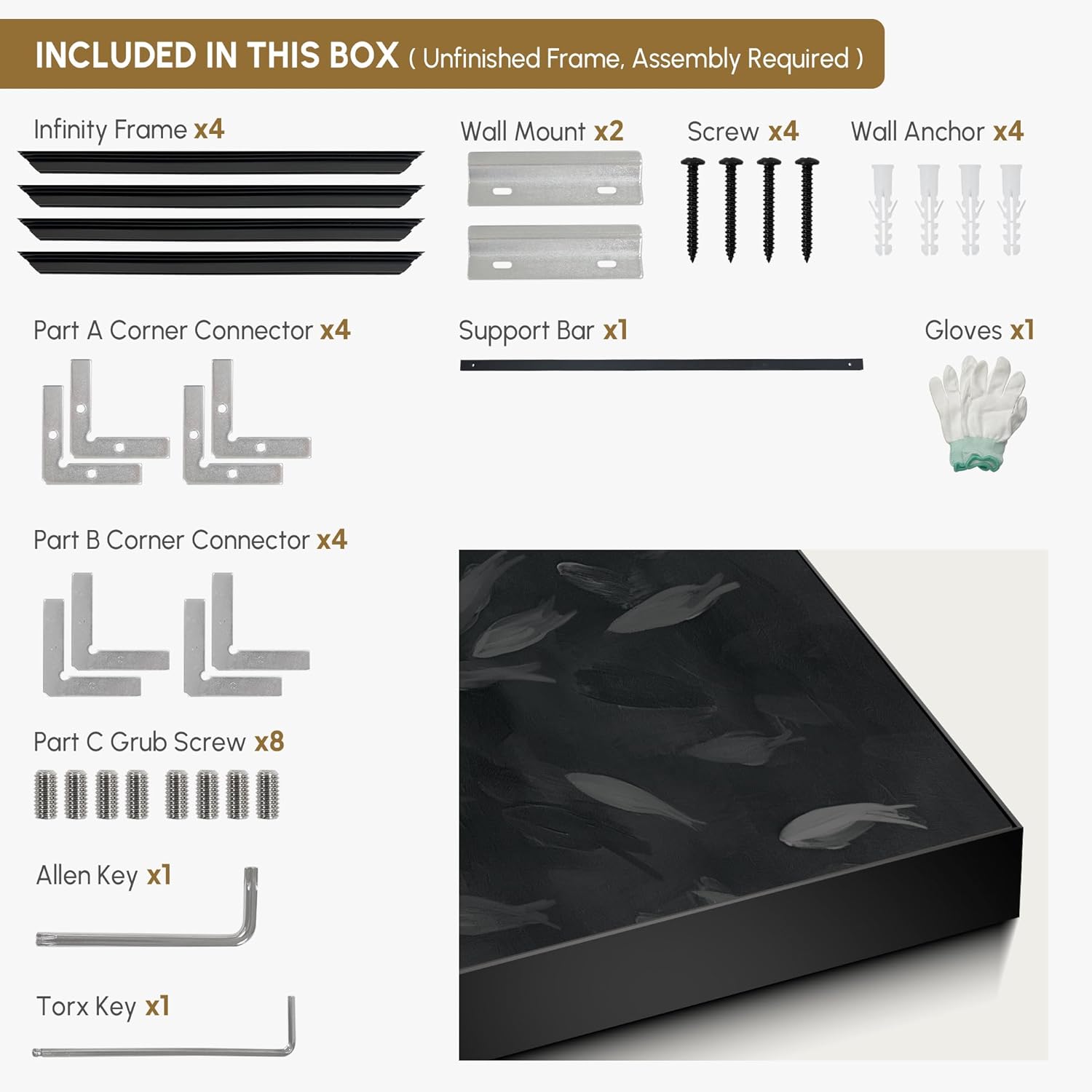 • Assembly Required: The artwork comes with the frame components unassembled. Don¡¯t worry - setup is straightforward and tool-friendly. For best results and accurate alignment, we recommend two people to ensure a smooth assembly and a stable, secure wall mount.