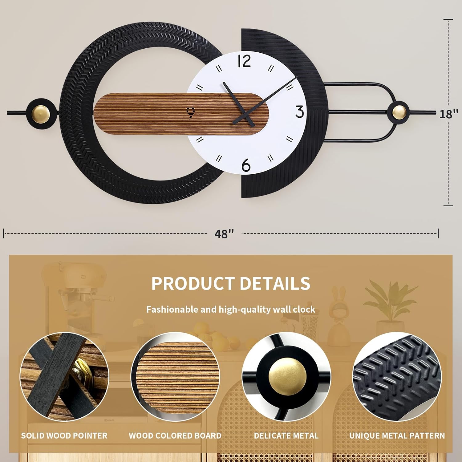 • ✅ Oversized Statement Piece-This 48x18 inch large battery operated wall clock stands out as a bold decorative feature, perfect for making a stylish statement in spacious rooms, hallways, or entryways.