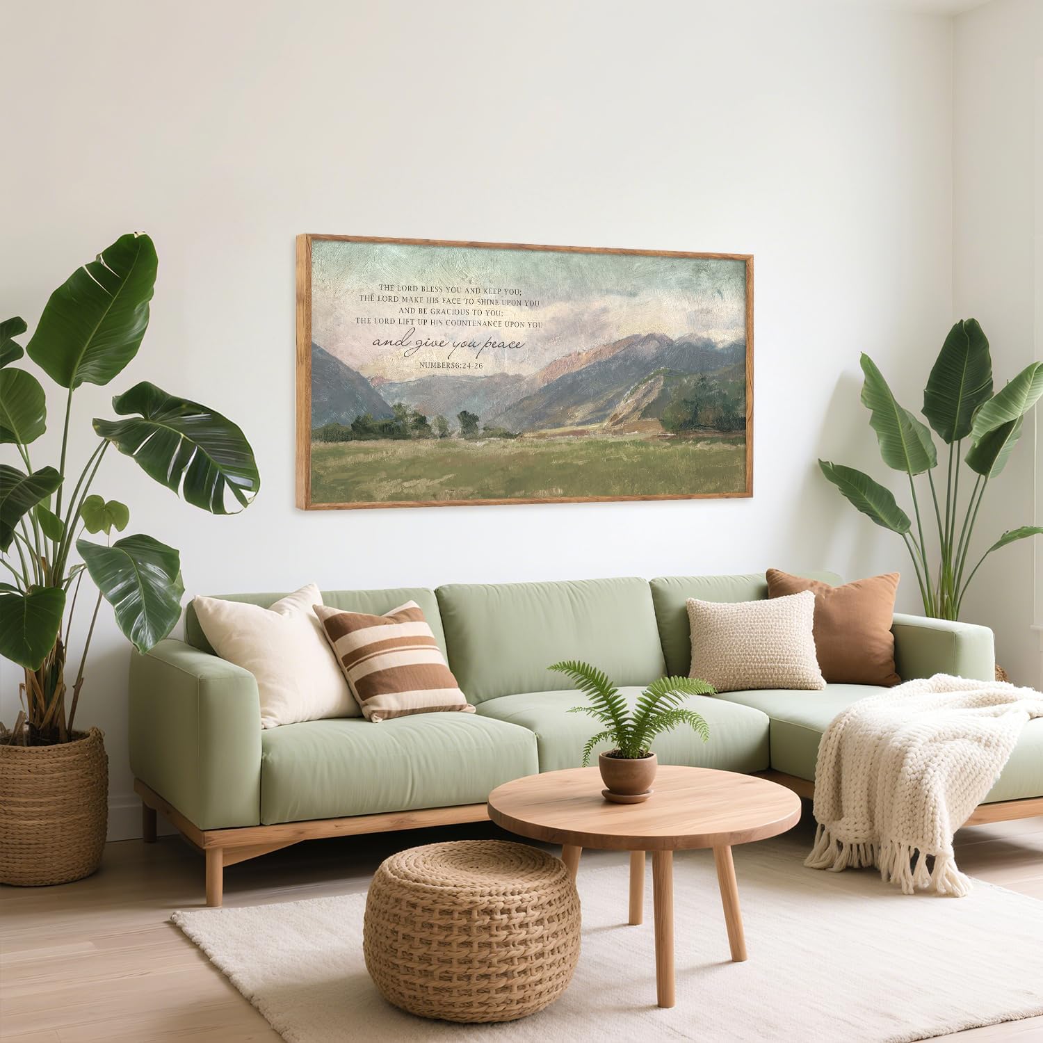 • Numbers 6:24-26 May The Lord Bless You Wall Art-- Aurlan watercolor mountain wall art set conveys a sense of tranquility, harmony, and sacredness through the combination of natural landscapes and religious texts. It is not only a beautiful landscape painting but also a source of spiritual comfort and blessing.