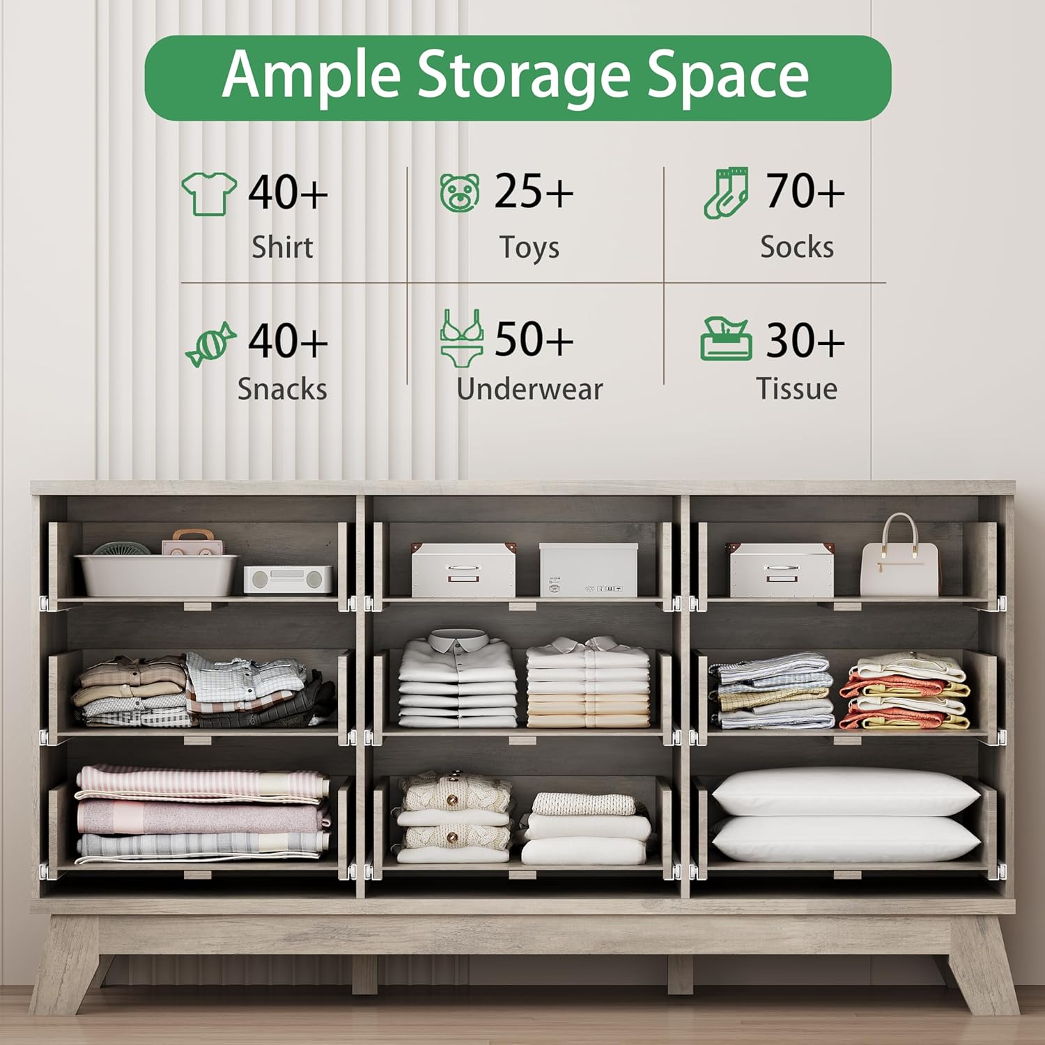 • 【Versatile Wood Dresser】Except for being wooden dresser in your bedroom or as a console table in your living room, this storage cabinet also can be used as nightstand or side table. This long dresser could easily fit in various spaces such as living room, bedroom, hallway, entryway and closet. It is an ideal choice for small spaces such as apartment or dorm room