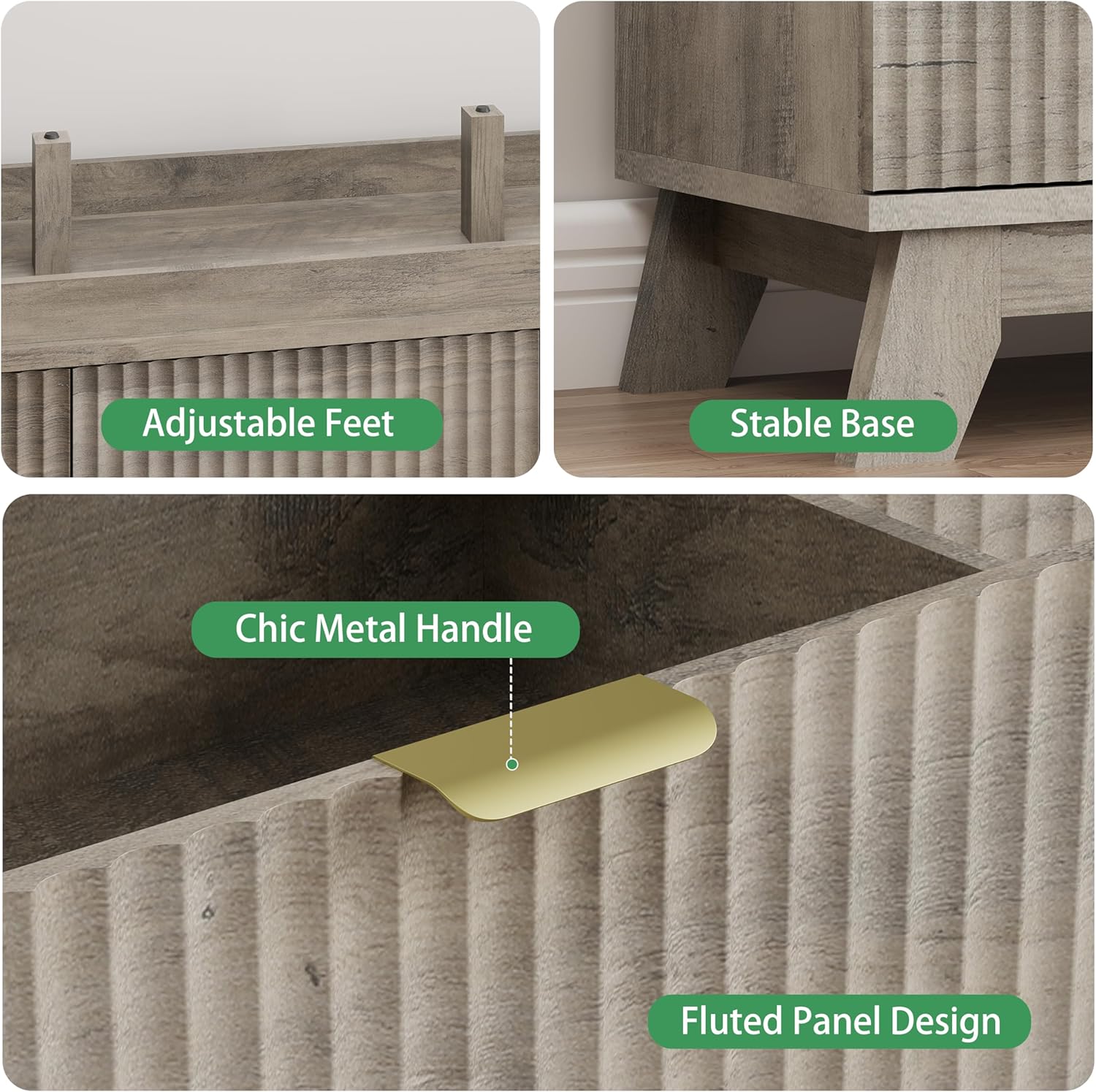 • 【Modern Chic Appearance】The unique wave-like fluted panel enhances the texture and elegance of this bedroom dresser. The thick table top features natural wood grain that complements the natural oak finish. The wide metal handle and splayed base legs add a modern touch, creating a personalized and distinctive appearance