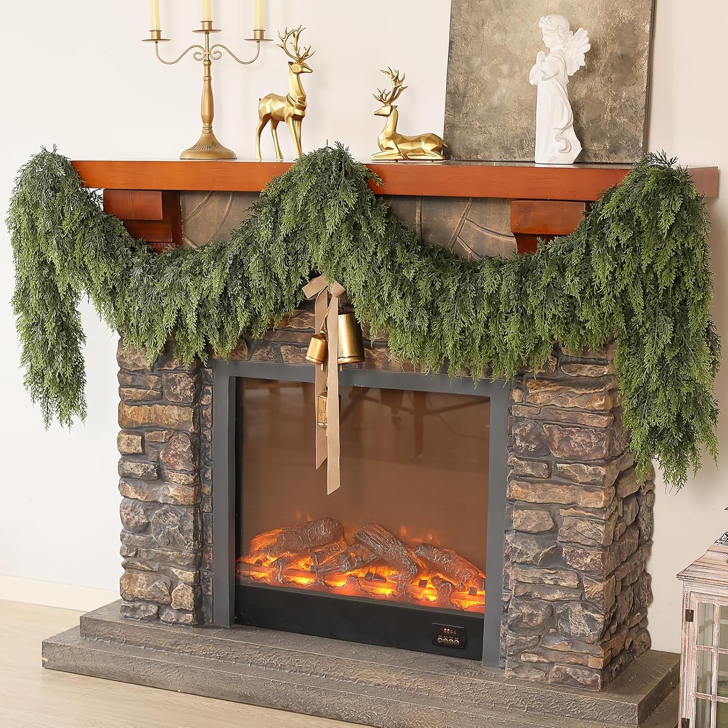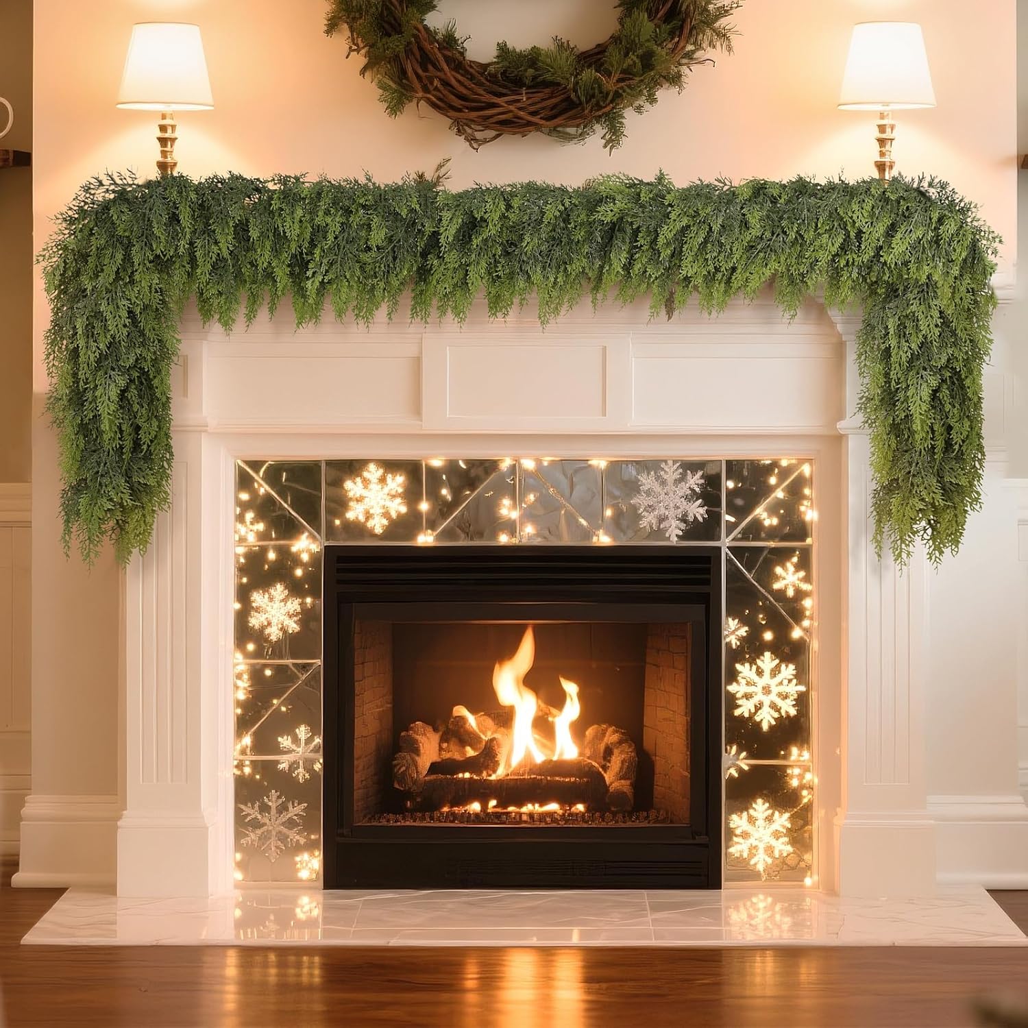 • Realistic Christmas Garland - The cedar garland is very lush. We used more materials. Compared with ordinary garlands, they are denser and have a more realistic touch. As shown in the picture, a cedar garland can give your fireplace a plump and fluffy effect, making your Christmas decoration more convenient.