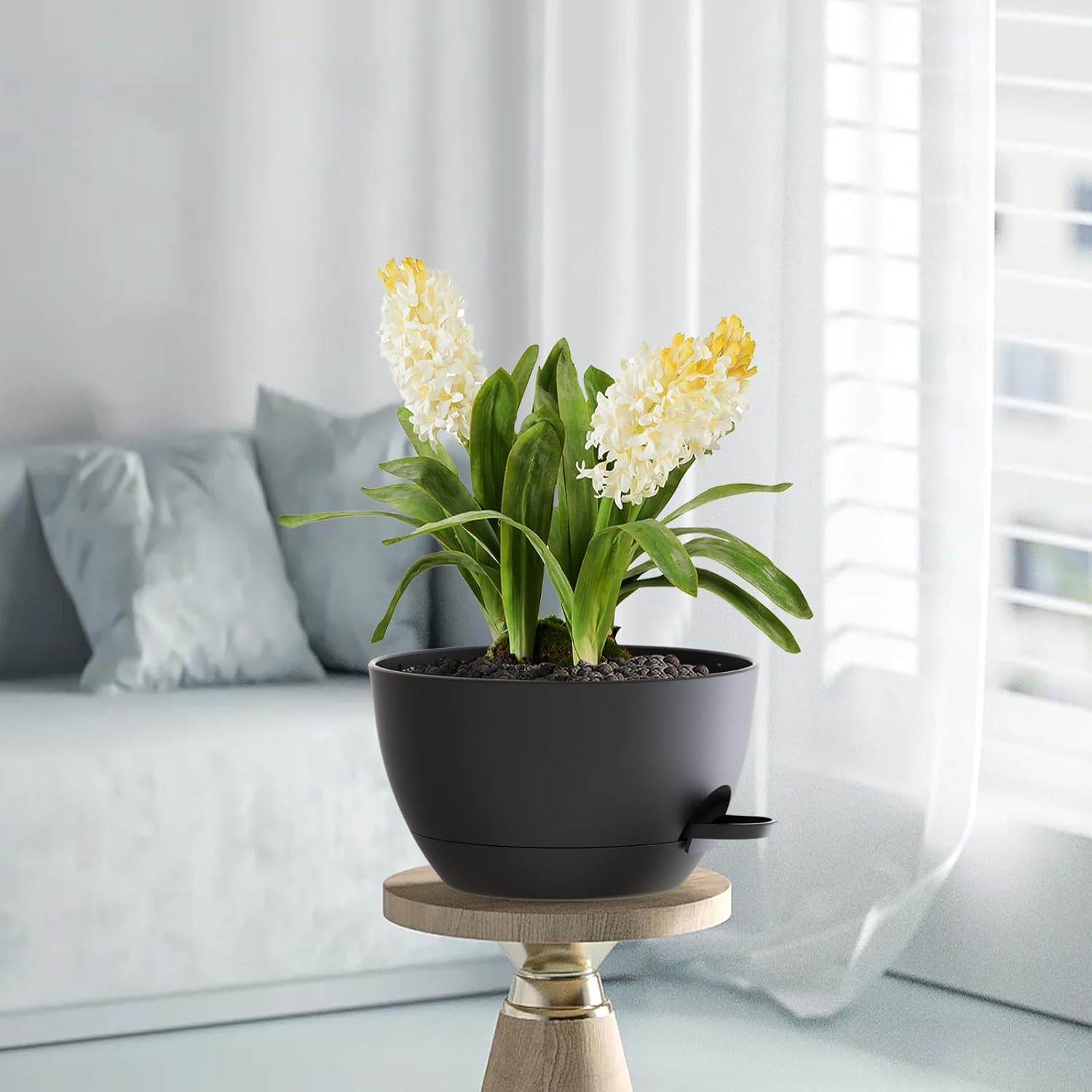 • 【Self-Watering Hanging Flower Pots with Removable Saucer】the appearance and structural design of the Hanging Pot prevents overwatering and acts as a water reservoir to promote Plant growth. It is suitable for a variety of Hanging Pot Plants, such as ivy, Herbs, Ferns, Philodendrons, Succulents, Flowers or other Plants