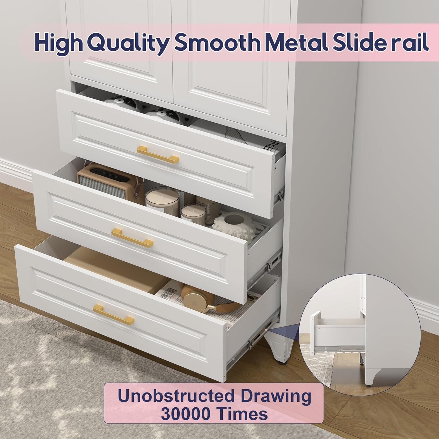 • Spacious and Adjustable Storage: This tall pantry cabinet has 3 adjustable shelves and a deep drawer. The height of the shelf dividers can be adjusted to maximize organization in your kitchen or home. Each shelf can hold up to 180lbs, making it ideal for heavy kitchen utensils or bulky household items