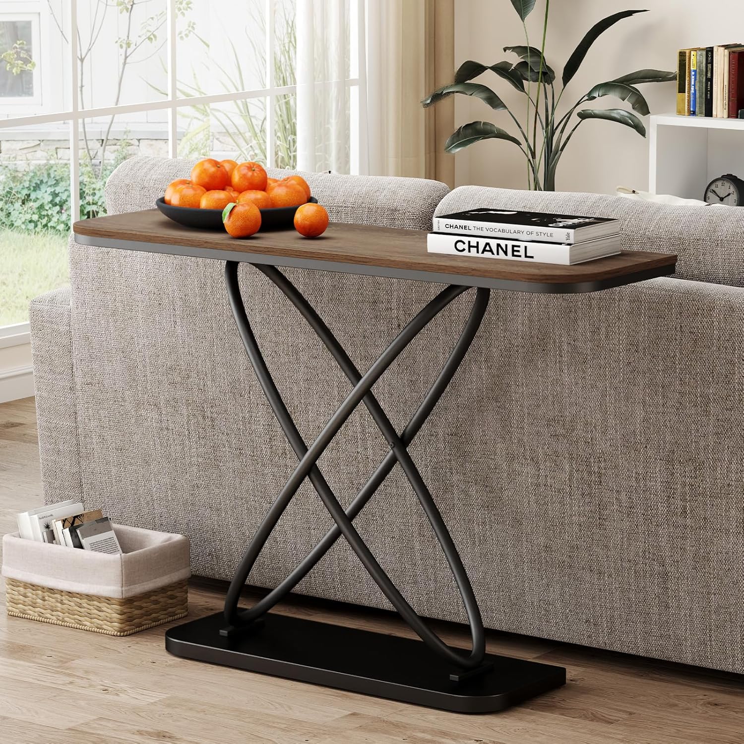 BECHAEO Farmhouse Narrow Console Table for Living Room, 47.4" Rustic Narrow Entryway Table, Sofa Tables Behind The Couch, Industrial Wooden Accent Tables for Hallway, Foyer Walnut