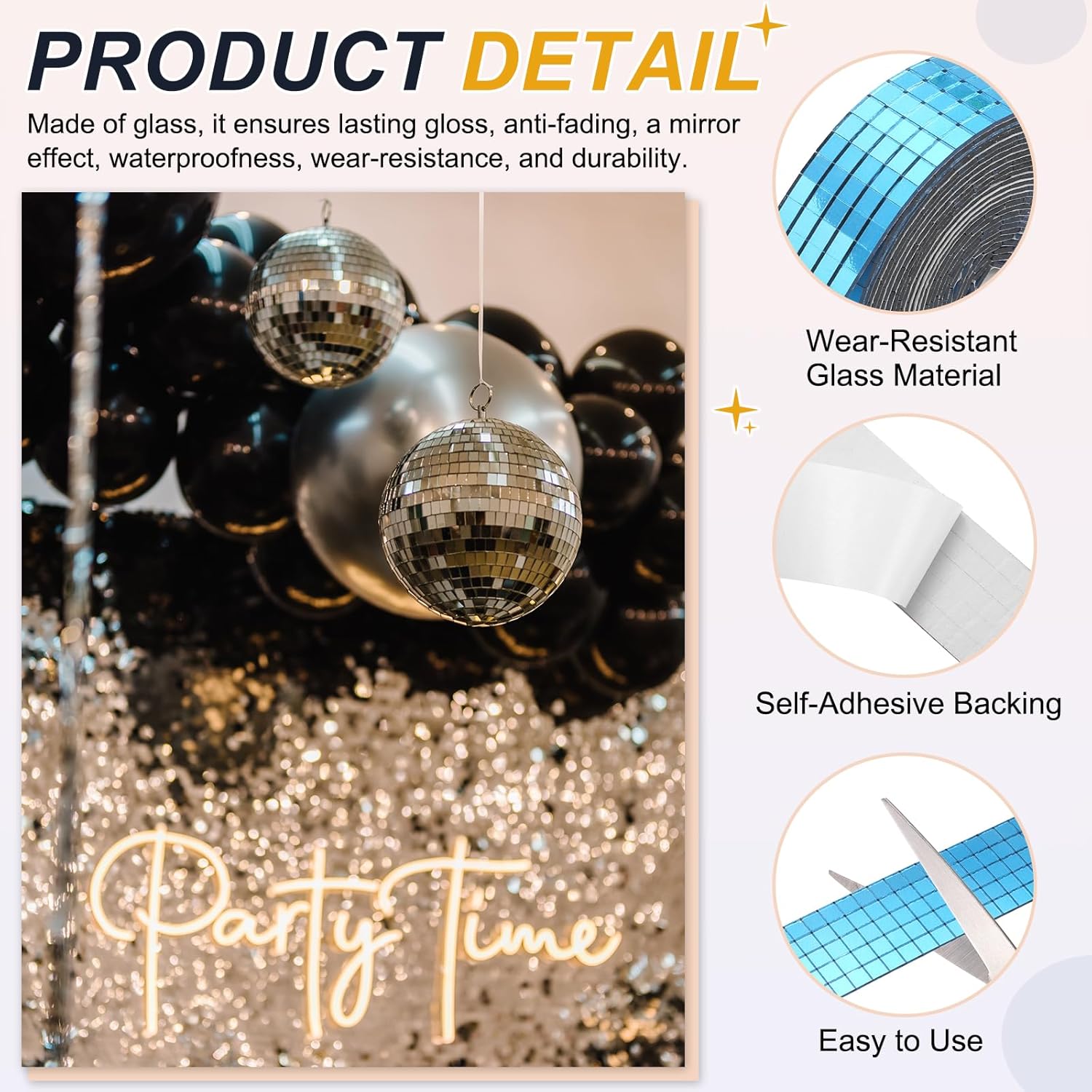 • These mirror mosaic tiles can be used for DIY disco balls, decorating vases, cups, mirrors, photo frames, hats and other craft projects. Can be used in bathrooms, kitchens, bedrooms, dance studios, walls, ceilings or floors, perfect for birthdays, weddings or theme parties, can add a happy atmosphere to the festival.