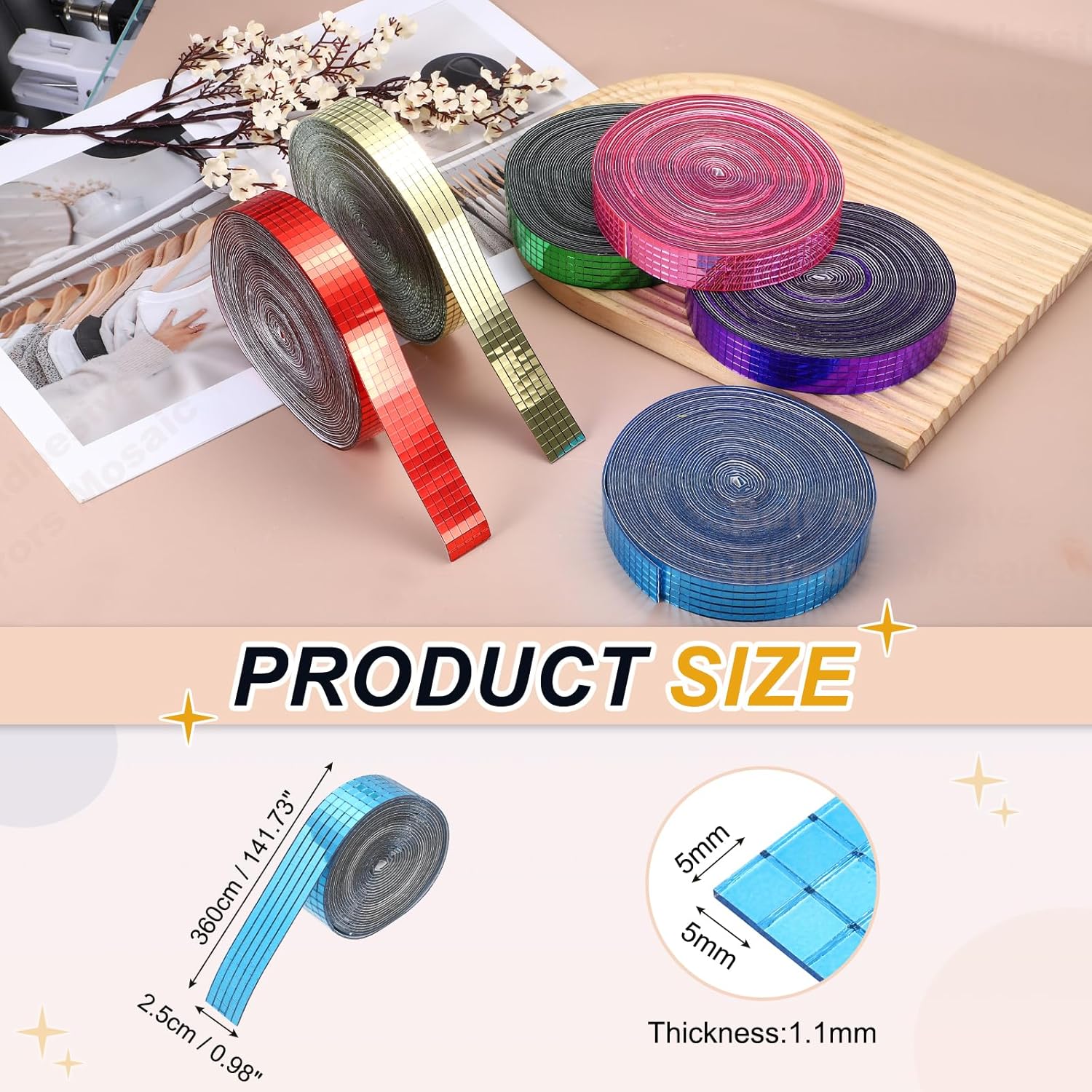 • Specification: Color: Light Blue; Material: Glass; Size:360x2.5cm/141.73x0.98Inch(LxW); Thickness:1.1mm/0.04inch; Each Tile Size: 5x5mm/0.2x0.2inch; Packing List: 3600 Pcs x Self Adhesive Mirrors Mosaic Tiles (Roll of 1)