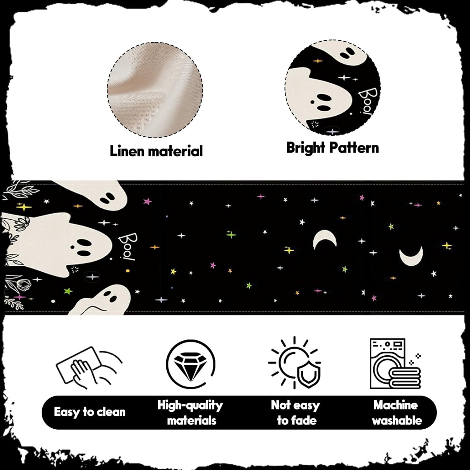 • Durable Halloween fabric: This long table runner is made of high-quality linen material. The anti fading printing process ensures that this long table runner is not only resistant to dirt and high temperatures, but also effectively prevents scratches on the desktop