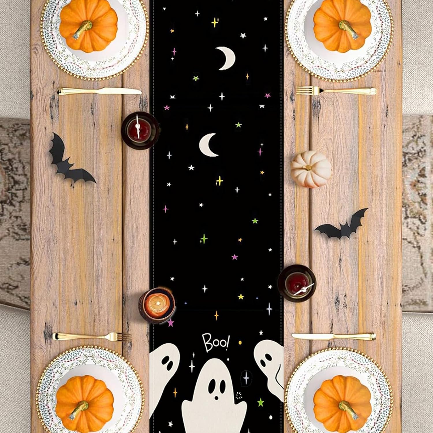 • Package Content: Includes 1 Halloween table runner (13x36 inches), printed with ghost patterns and classic Halloween elements, instantly turning your dining table into the focus of the holiday
