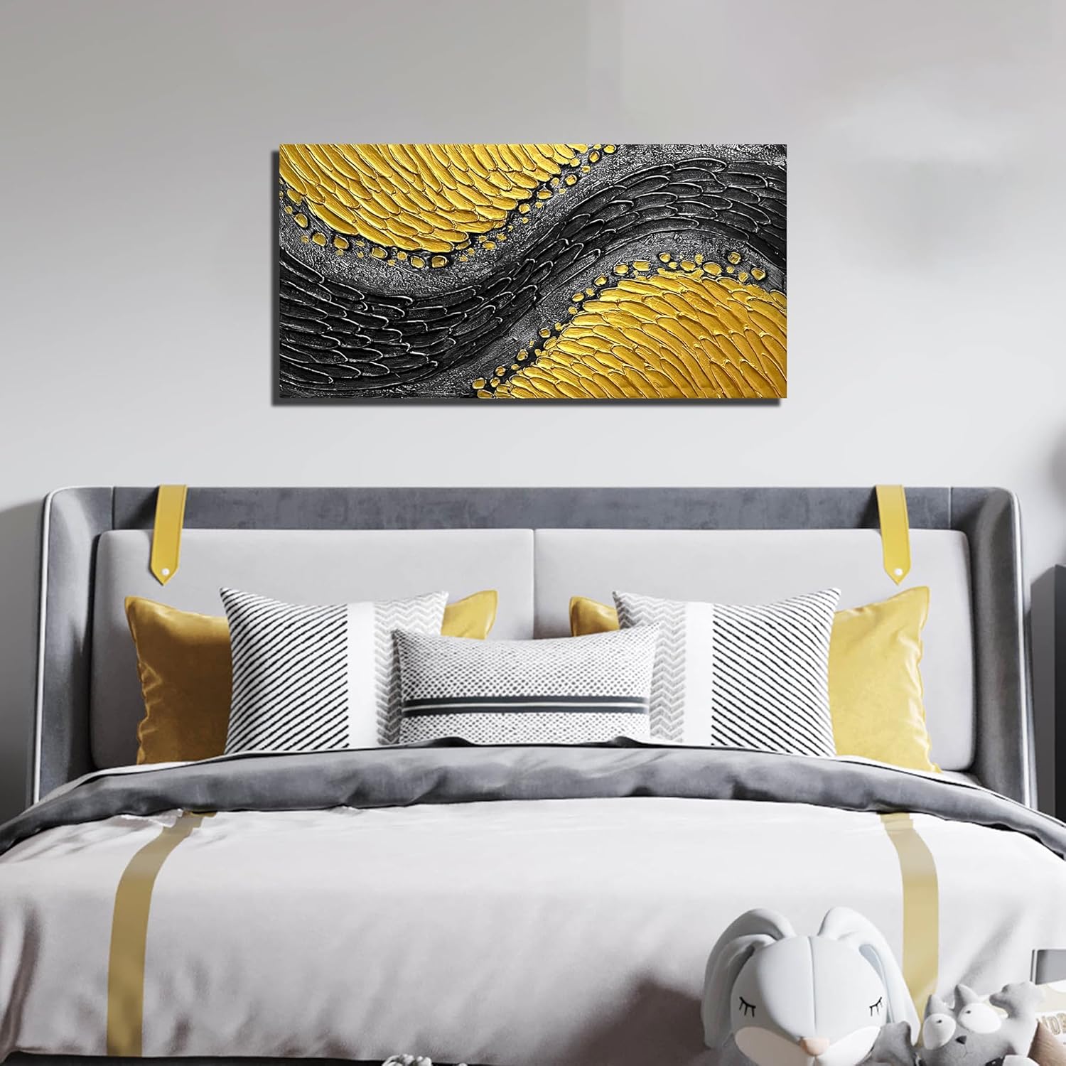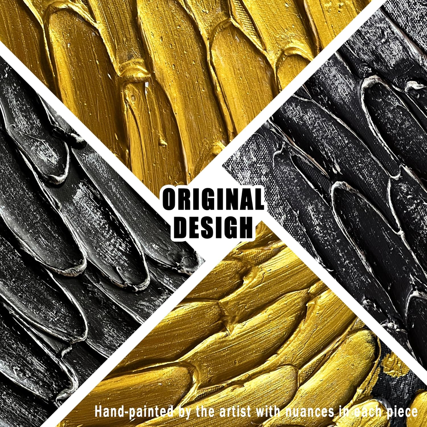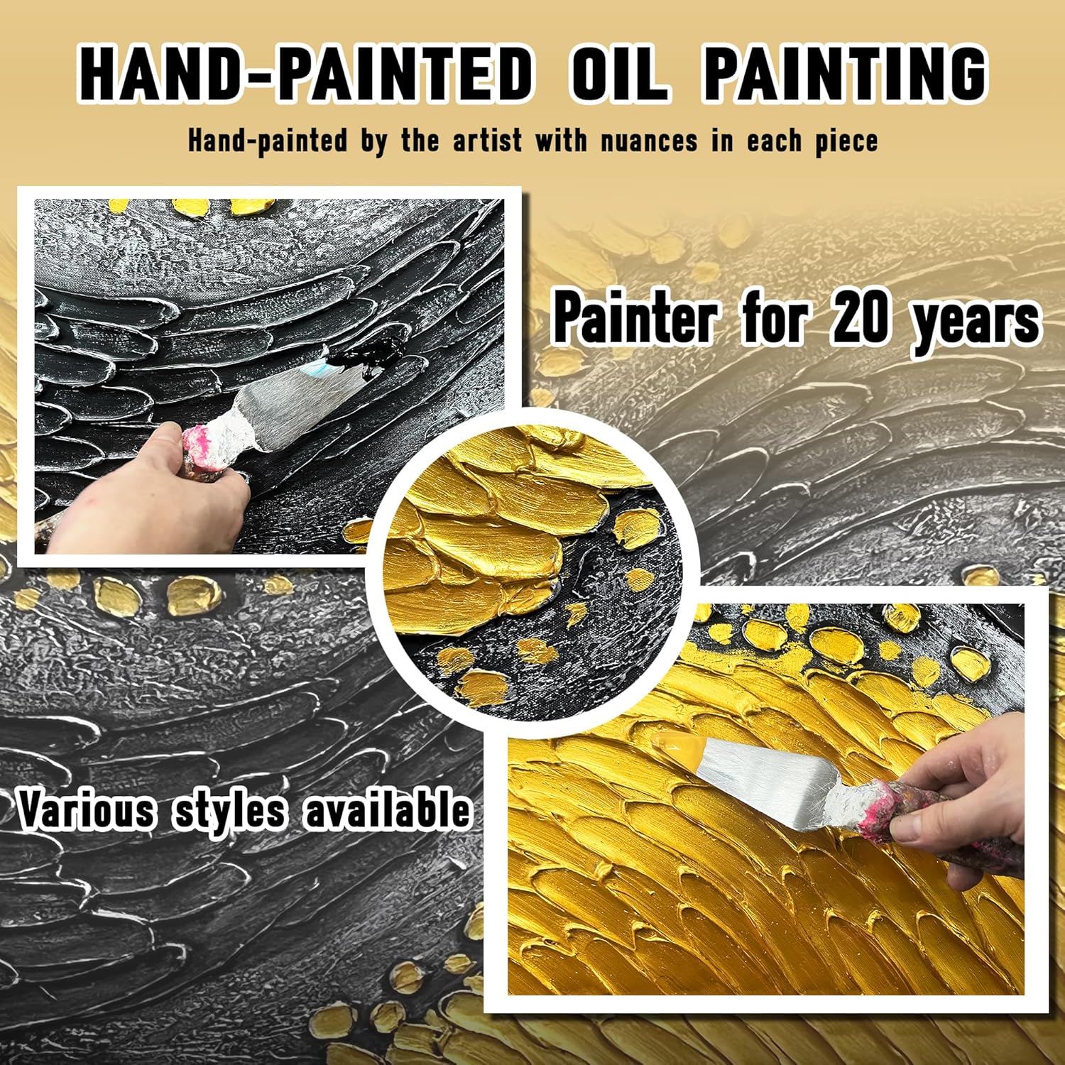 • 【Canvas Mural Size】theme "Black And Gold Abstract" The size is 20" x 40". Since each painting is hand-painted, the actual painting may differ slightly from the product image. Due to different monitor brands, the actual wall painting color may be slightly different from the product picture.