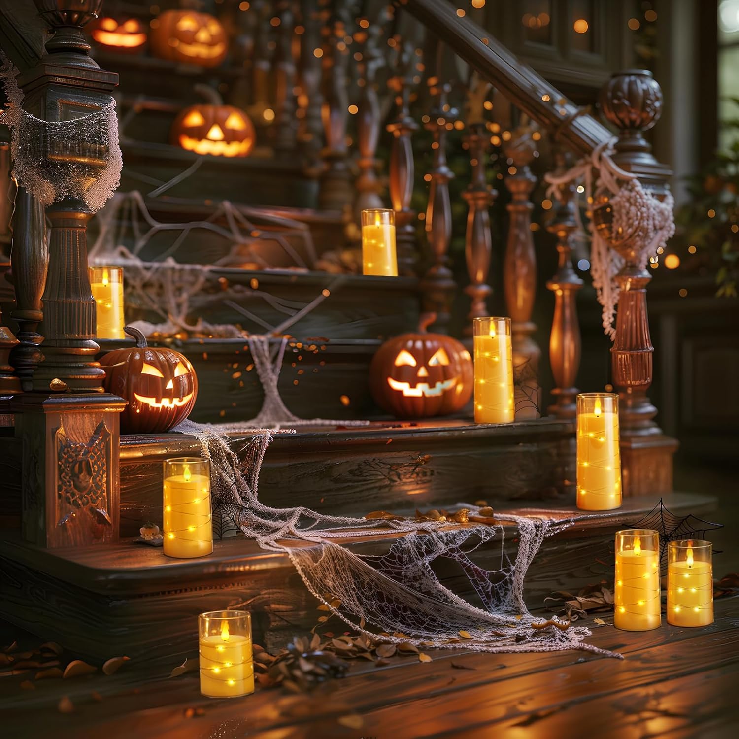 • Charming String Light Design: These Homemory flameless candles are creatively wound with fairy lights to emit a bright and beautiful light, the embedded string lights are perfect for use in decorative scenes such as home, wedding, Halloween, Thanksgiving, Christmas, etc.