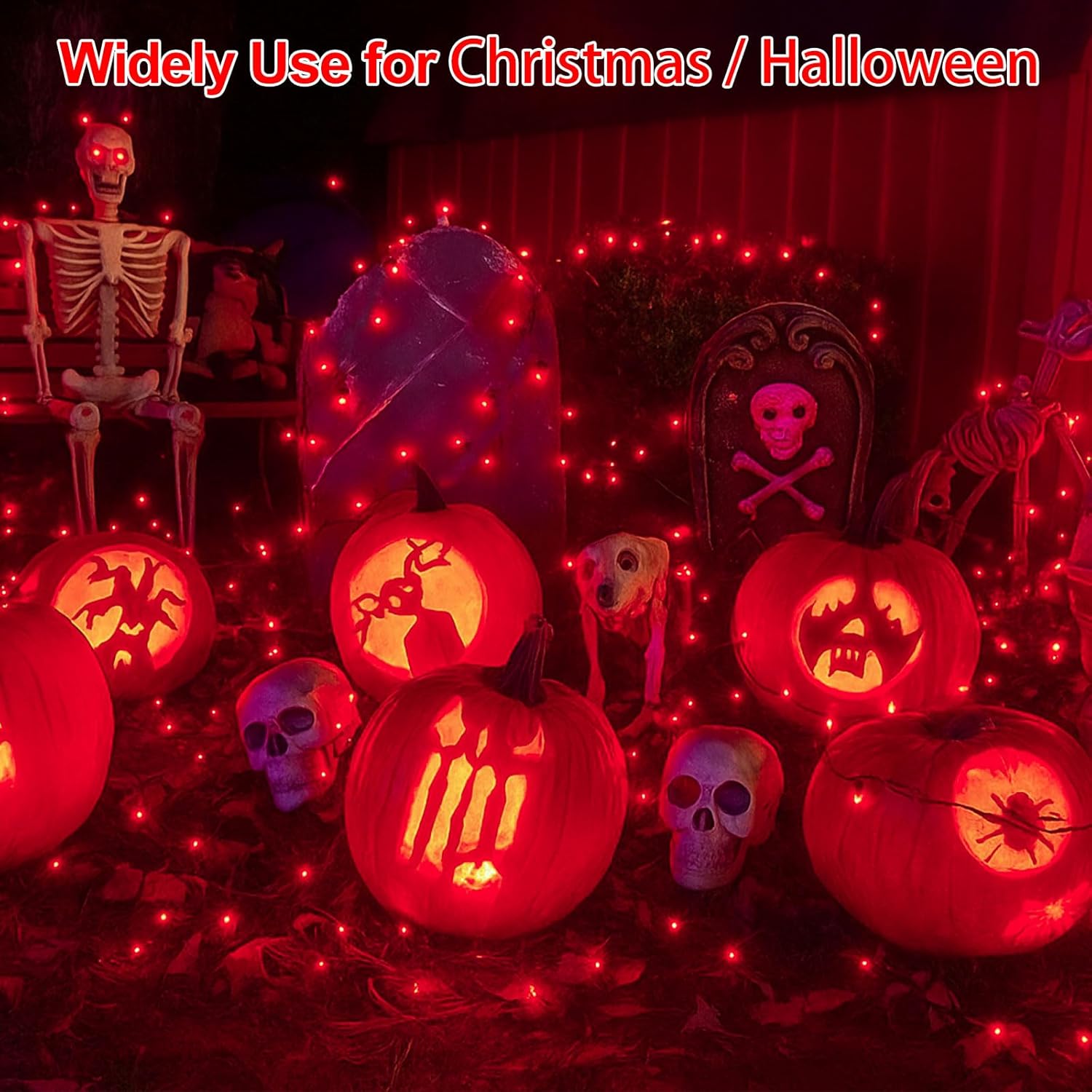 Extra-Long 144FT Solar String Lights for Outside, 2 Pack 400LED Solar Fairy Lights Outdoor, Waterproof Copper Wire with 8 Modes Twinkle Lights for Tree Garden Party Xmas Wedding Decor (Red)