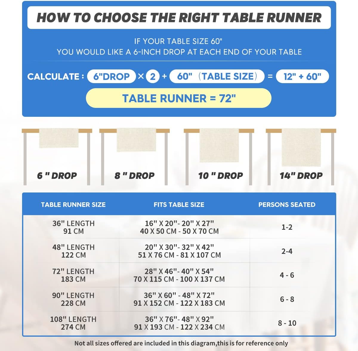 • Fits Table Size : This table runner is 13 x 36 inch, appropriate for a table that can seat 1-2 people, better match your table and give you a delightful dining experience