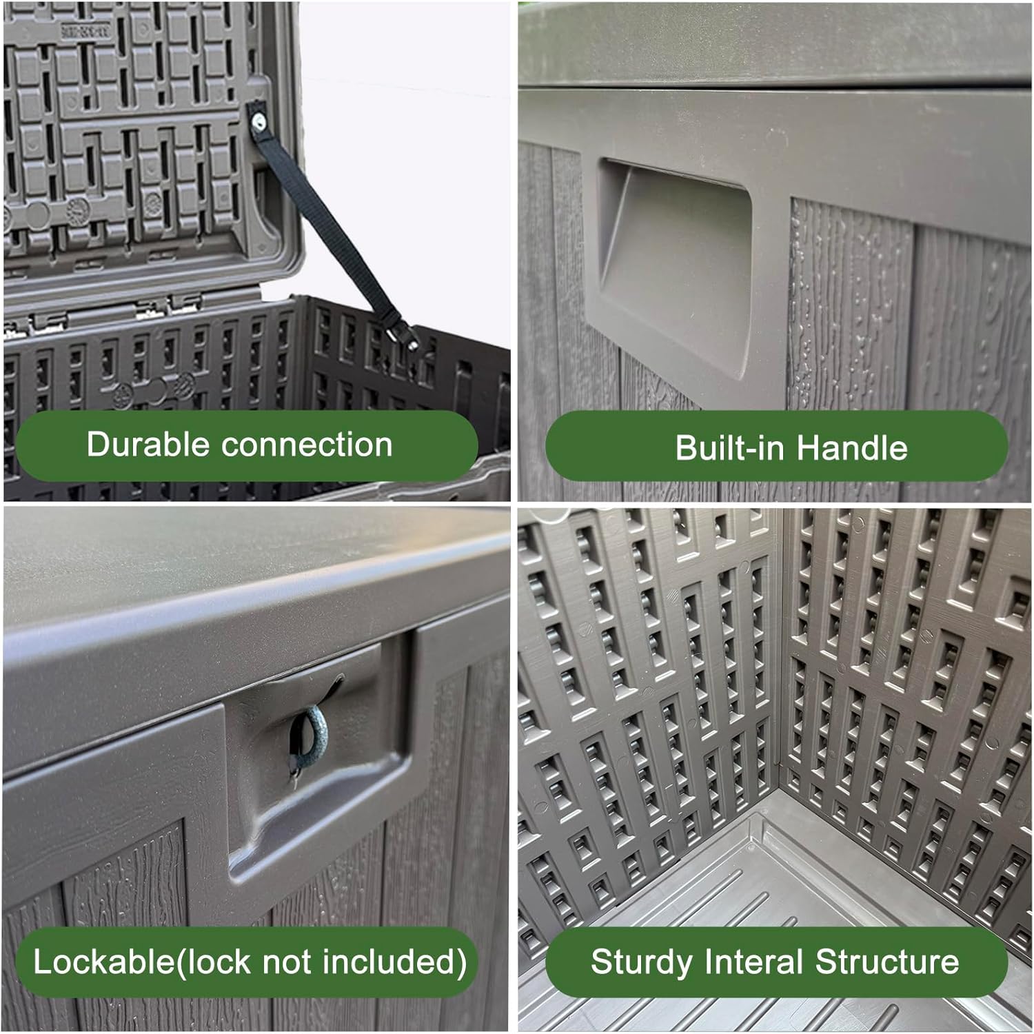 • Durable Resin Construction: Built with double-layered resin, this outdoor waterproof deck box ensures long-lasting reliability and enhances strength and durability for long-term use