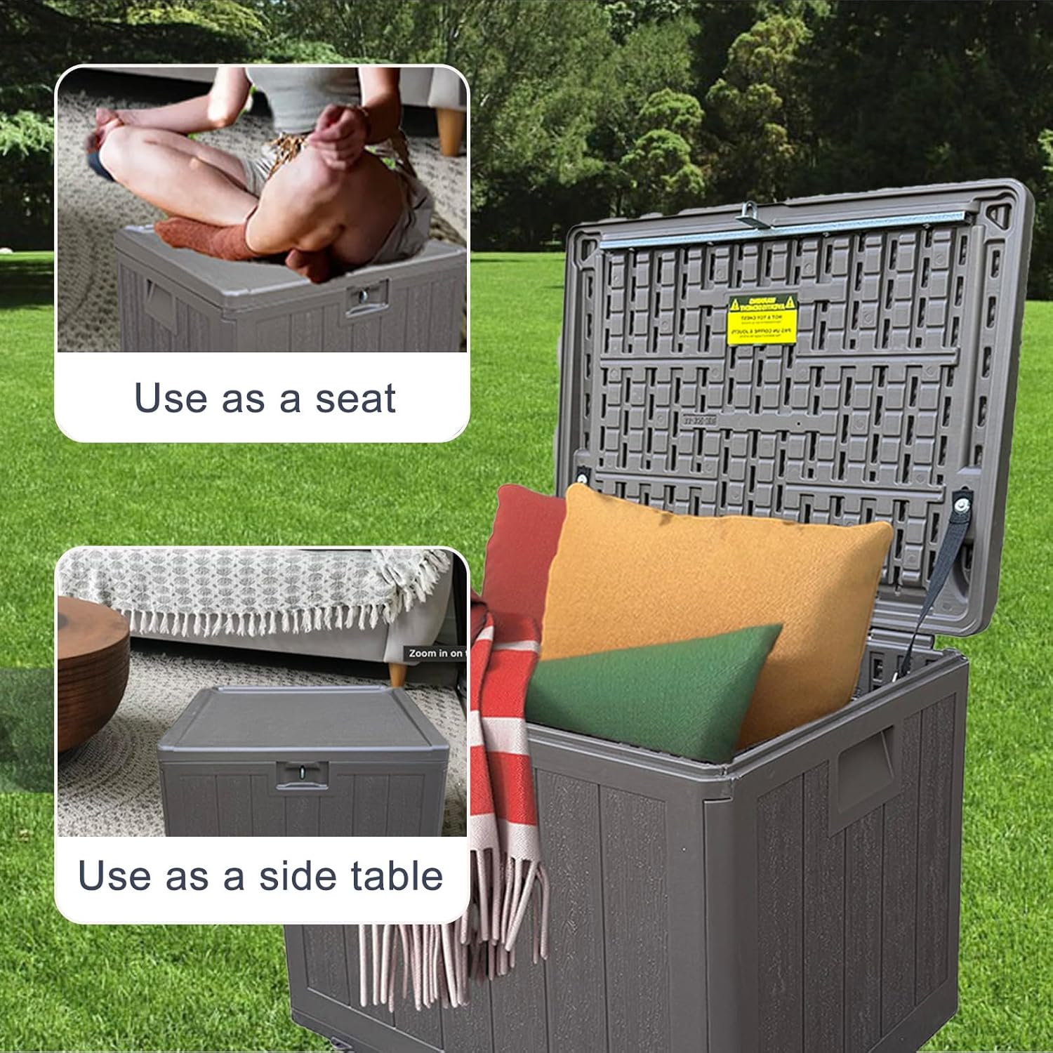 33 Gallon Small Storage Box with Lid,Waterproof Indoor Outdoor Storage Container for Package Delivery,Patio Cushions, Gardening Tools, Pool Accessories, Lockable Resin Deck Box with handle