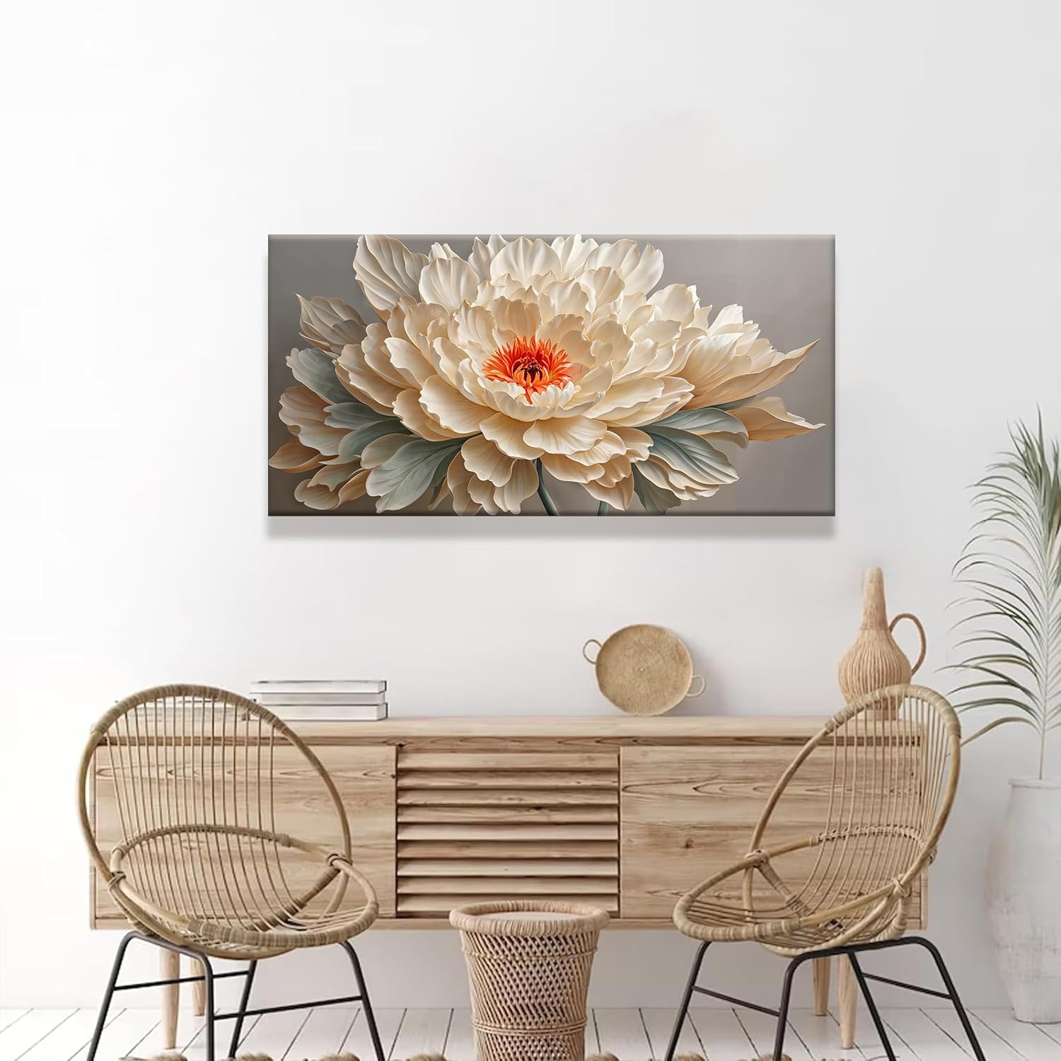 QSQ Canvas Art Wall Decor Small Size Modern Minimalist Home Decor Flower Paintings Yellow Flower White Wall Art Prints Floral Wall Art Pictures For Bedroom Kitchen Office Decoration 20" × 40"