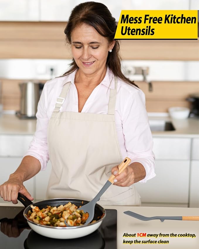 • Thoughtful Design: The little bulge design prevents the silicone head from touching the cooktop after cooking, effectively keeping the surface clean;Wooden handle keeps you away from the trouble of kitchen utensils rusting or breaking