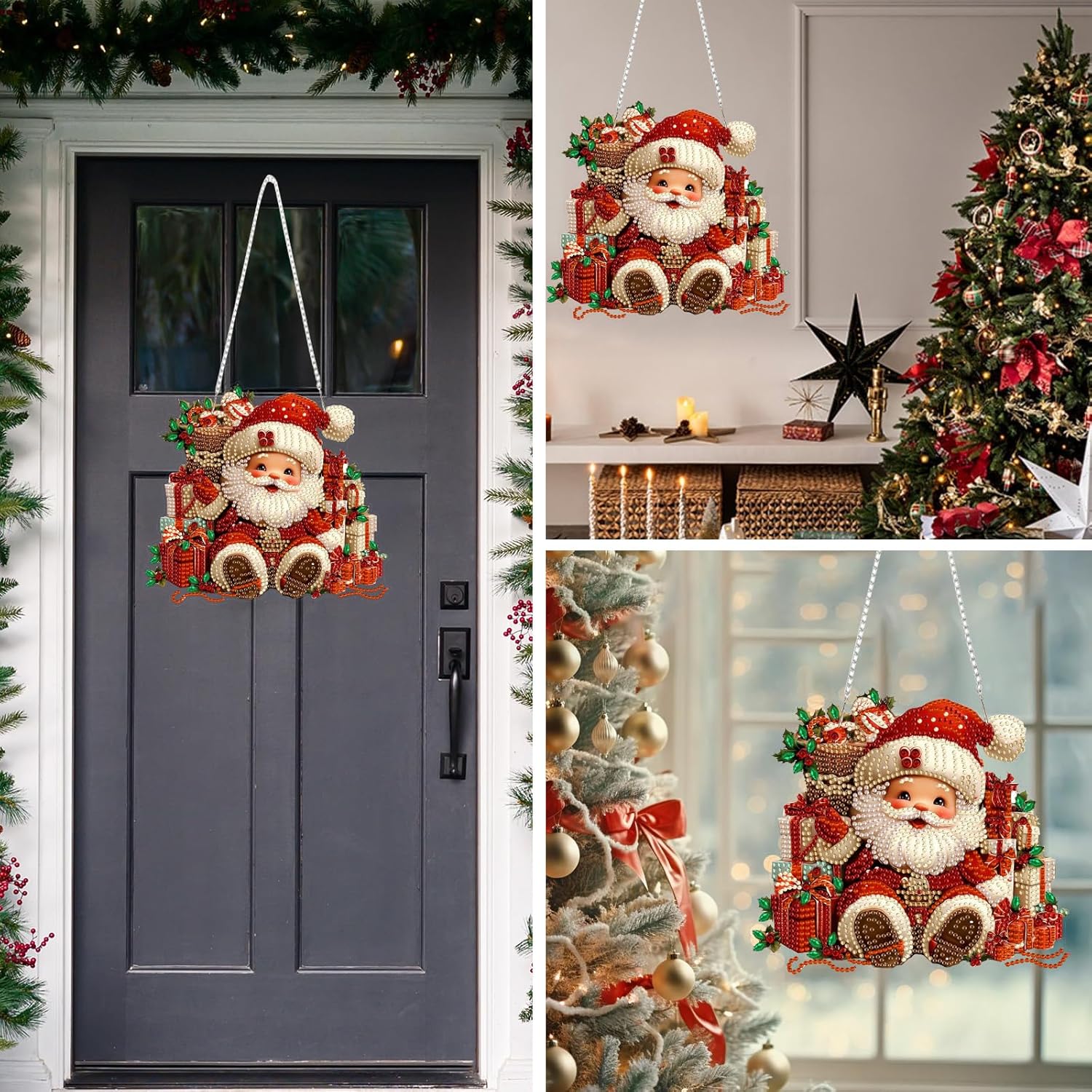 MEIYUDA Christmas Diamond Art Hanging Kits for Adult, Santa Claus Diamond Painting Hanging Kits Ornaments, DIY Special Shaped Rhinestone Window Pendants kit for Home Garden Wall Decor Gift