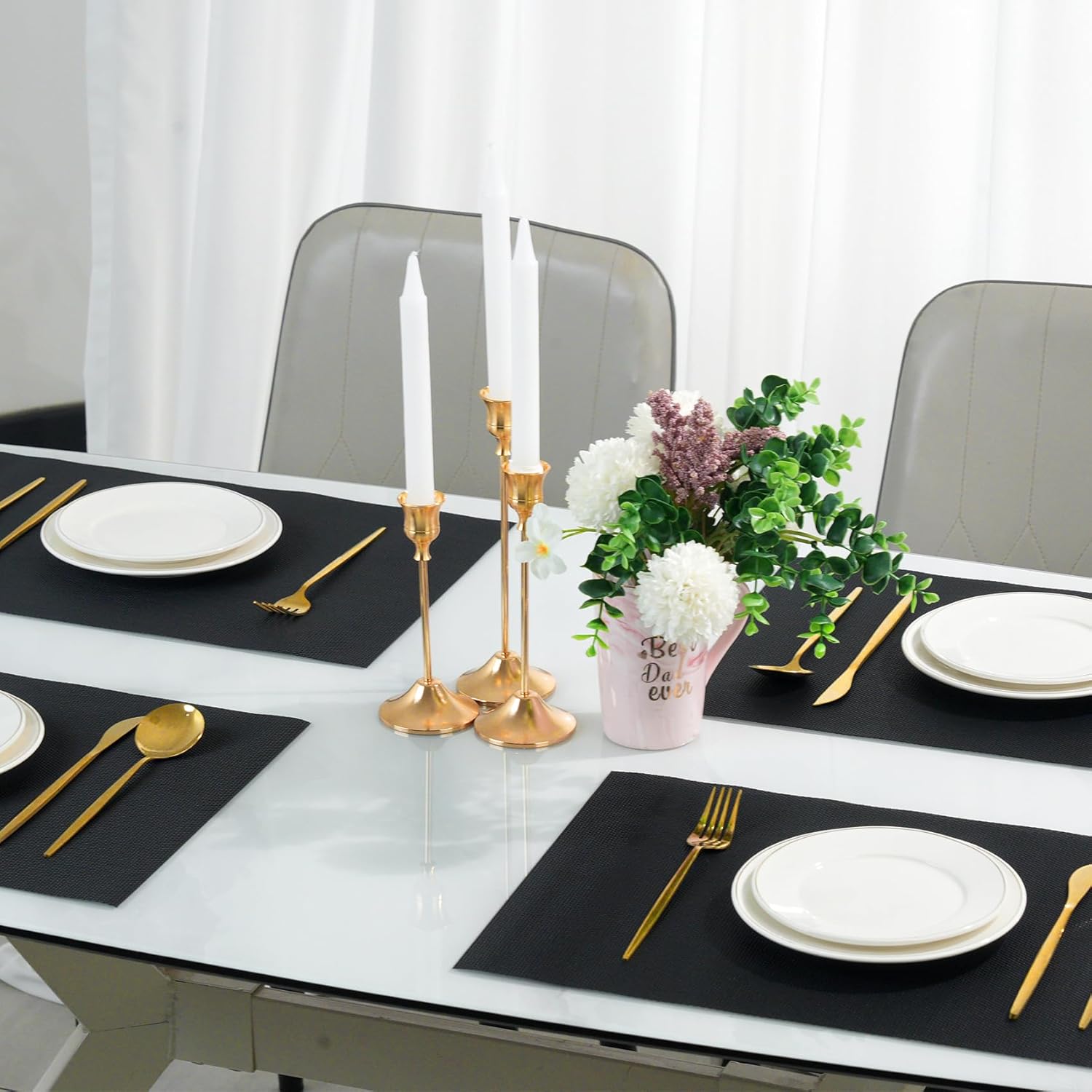 • 【High-quality Material】——Our placemats are made of 70% PVC and 30% polyester,placemats effective heat resistance of approximately 212°F(100℃) making them both durable that are protect your dining table while making mealtime more enjoyable.