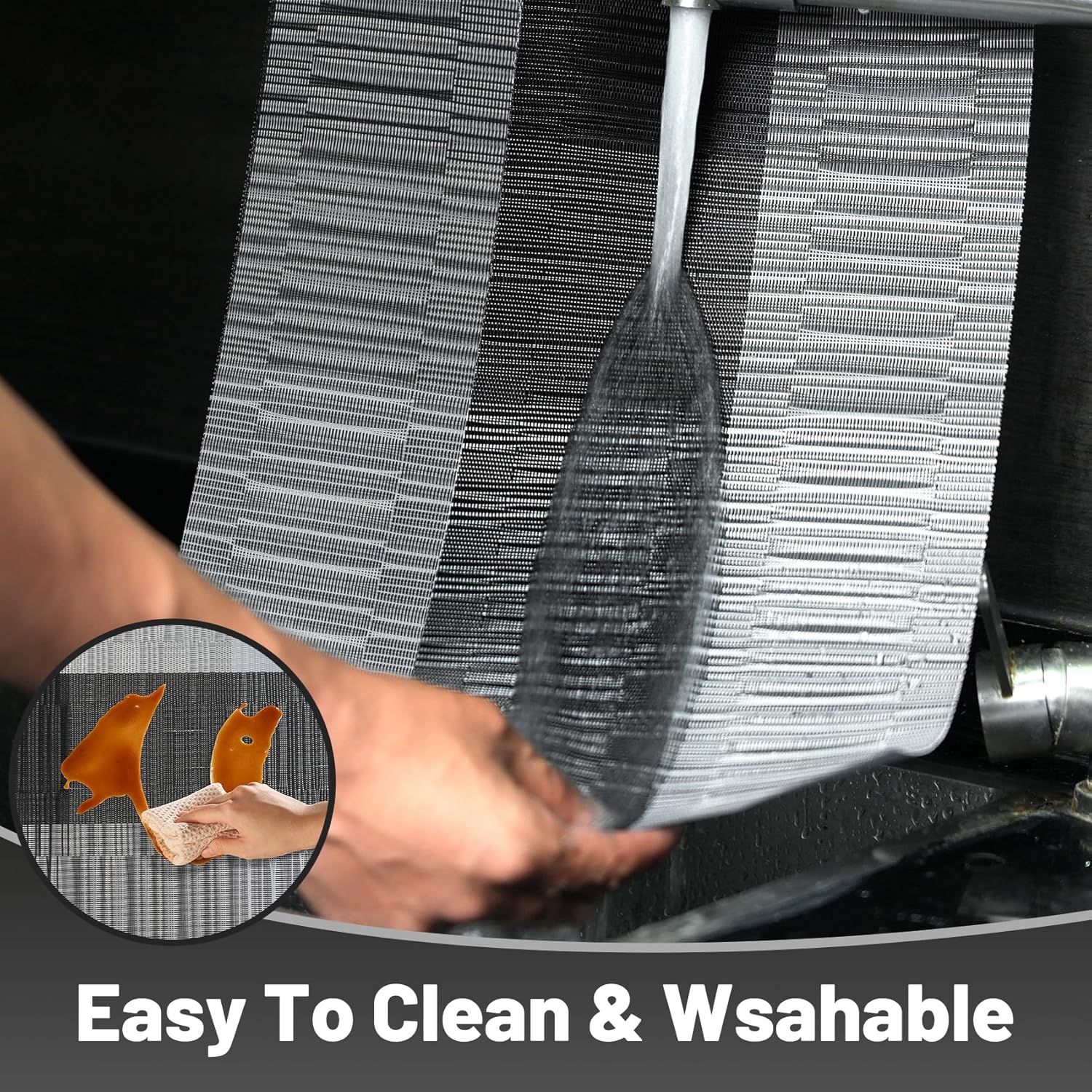 • 【East To Clean】——The washable placemats can be washed repeatedly.How to clean the place mats for kitchen table:Simply wipe with soap,water and a soft sponge or cloth.Scrub stubborn stains with a soft bristle-brush and a bleach-based cleanse.