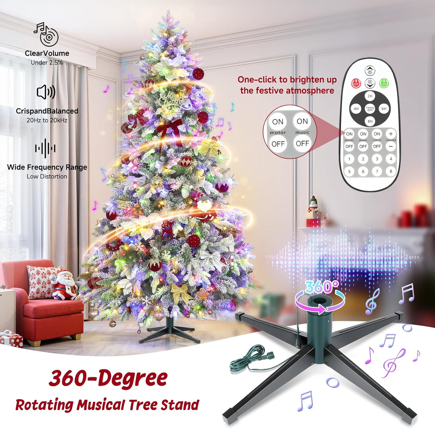• Remote-Controlled Rotation & Lights: Motorized 360° rotating stand showcases the tree evenly. Choose from 10 lighting modes (RGB + Warm White) via remote for dynamic holiday ambiance