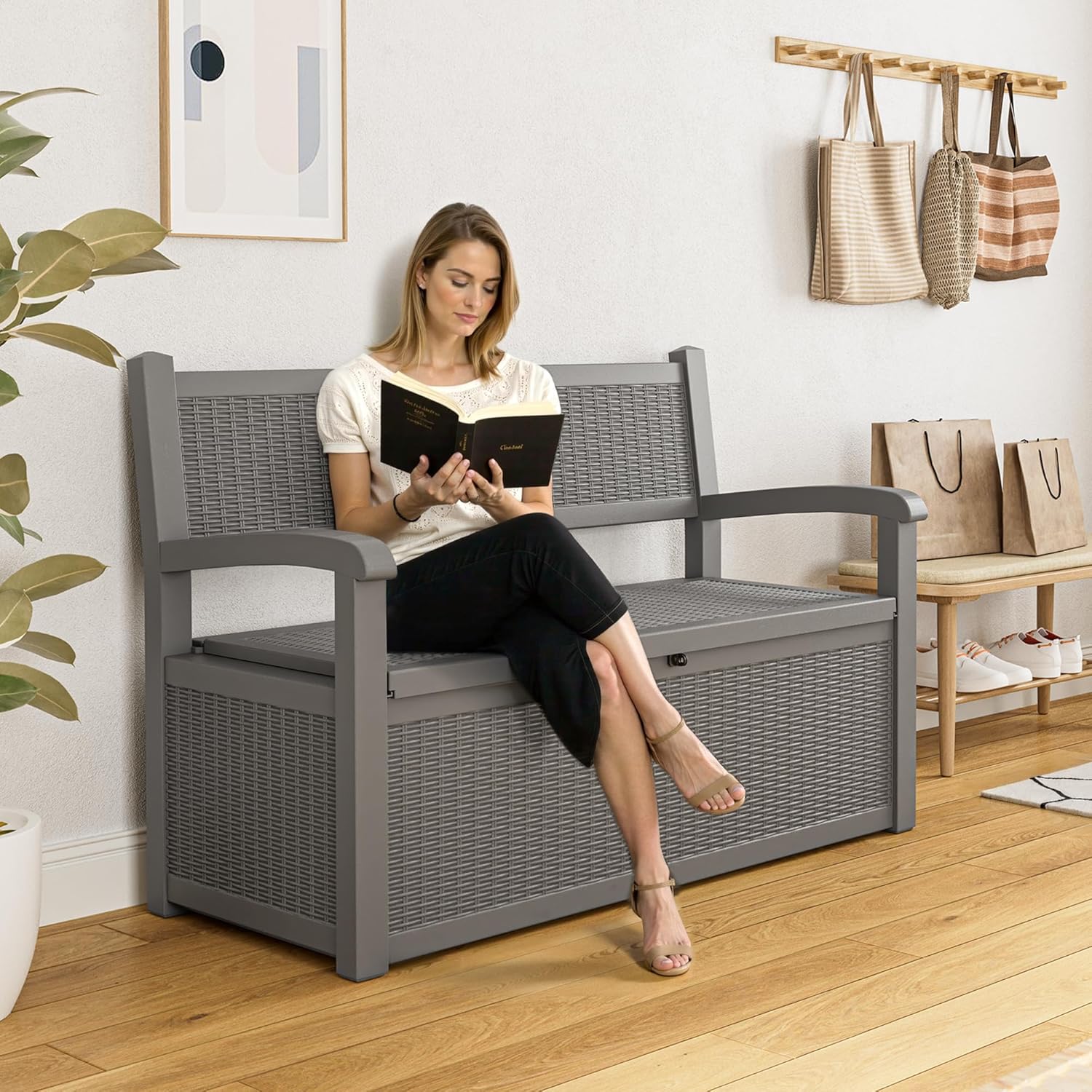 • All-Weather Protection: Crafted from weather-resistant resin, this outdoor bench with withstands sun exposure, moisture, and temperature changes while maintaining its structural integrity season after season, this porch storage stands tough for long-lasting protection.