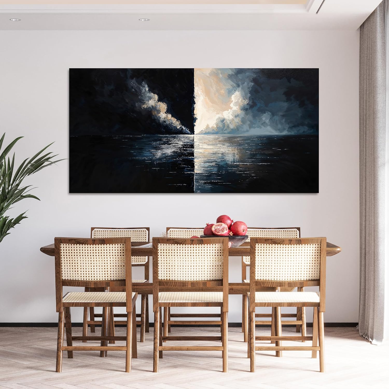 Abstract Large Wall Art Decor Wall Art Pictures for Living Room Abstract Canvas Art Wall Decor Modern Black and White Wall Art Prints Oversized Coastal Wall Art Bedroom Office Home Decor 29" X 58"