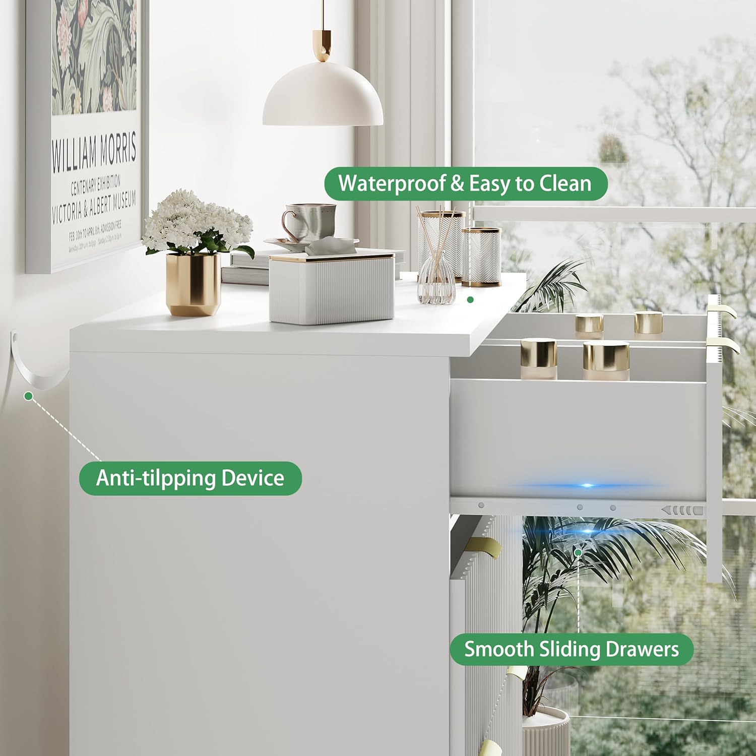 • 【Solid Material & Sturdy Construction】The dressers & chests of drawers are constructed from optimal MDF, P2 engineered wood and coated metal handle which not only has exquisite texture, but also ensure long-term use and scratch resistant. Each drawer holds up to 35 lbs/15 lbs and the thickened tabletop can support up to 150 lbs. For easy cleaning, just wipe with damp cloth and get it air-dried