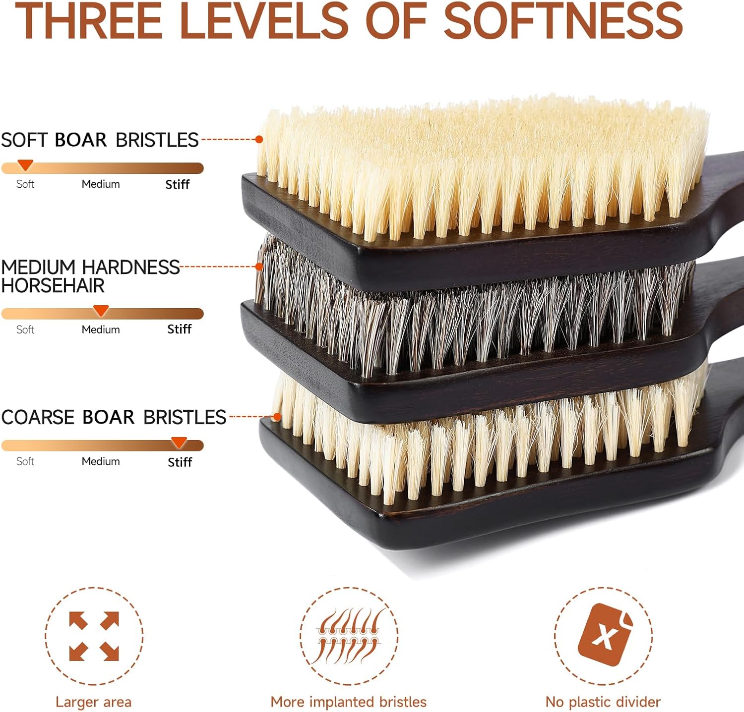 • Brush Head Craftsmanship: We source premium bristles through continuous testing. By carefully matching and adjusting their thickness and length combinations, we tailor bristle stiffness levels to suit different skin types. These selected bristles are directly embedded into perforated bamboo base plates treated with high-temperature beeswax, ensuring the bristles stay securely in place without shedding or breaking easily. Meanwhile, the brush head base plates also achieve enhanced mold resistance.