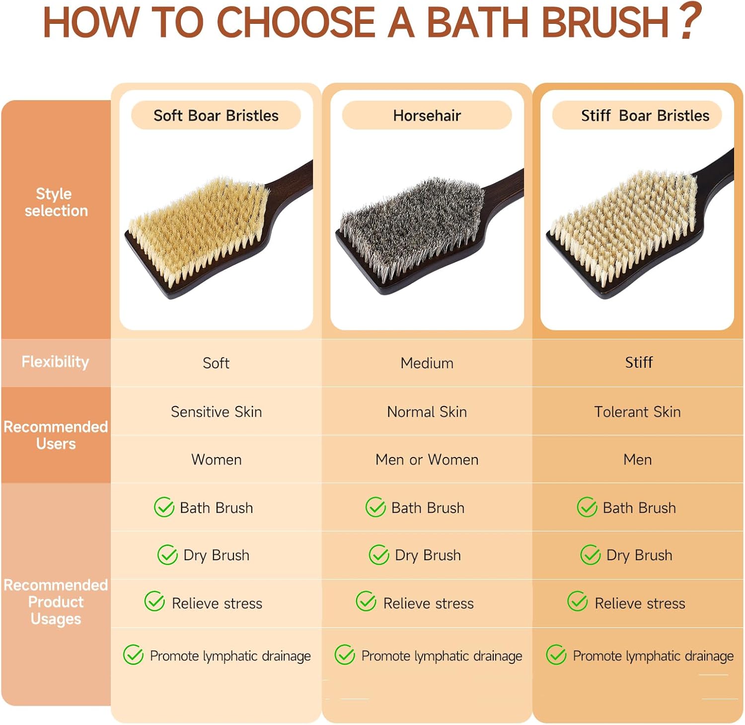 • Bristle Selection & Adaptability: When used for dry brushing, it unclogs pores, boosts blood circulation, alleviates stress, and keeps skin feeling refreshed daily. In the shower, it delivers deeper exfoliation. Ideal for dry, rough skin and other skin concerns.