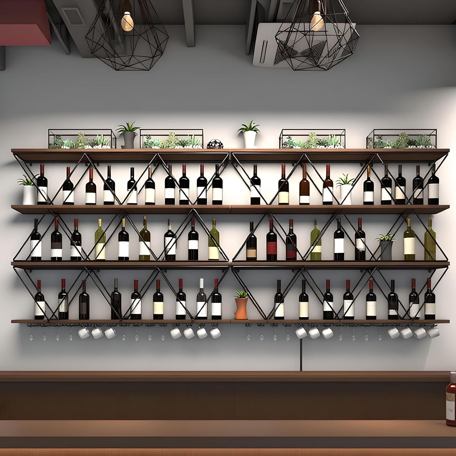 • Multi-function: Well-designed wine glass rack for wine glasses and free placement of wine. This wall-mounted wine rack can not only store wine bottles, but also other items to make your space more sophisticated.